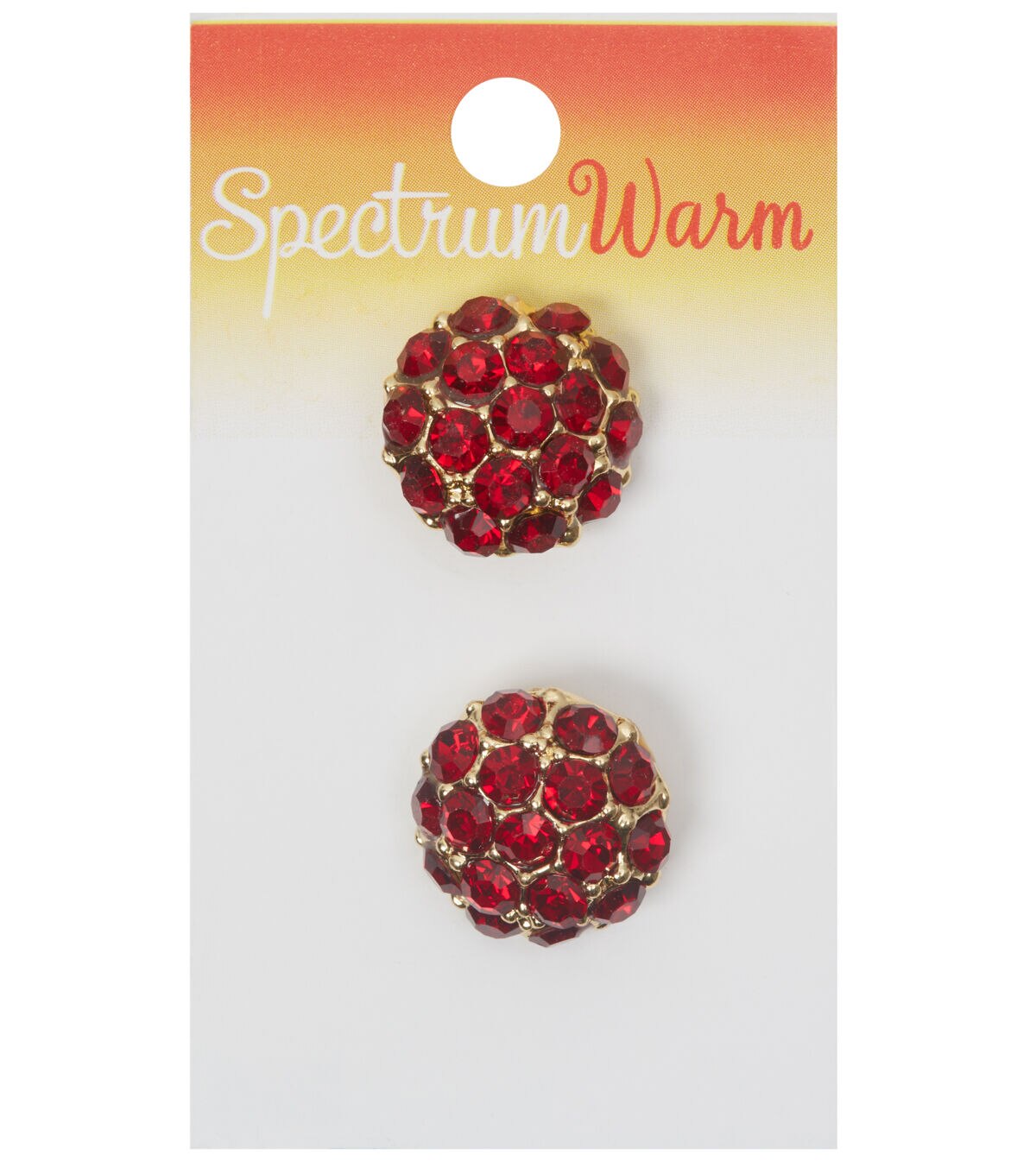 The Spectrum Warm Rhinestone Shank Buttons - Red will lend a charming touch to your craft and art creations. These buttons are adorned with red rhinestones that blend well with a wide range of apparel. You can add them to your skirts, shirts, dresses, tops and more. This pack includes two buttons that are sure to perk up your handmade creations with a dash of bling.