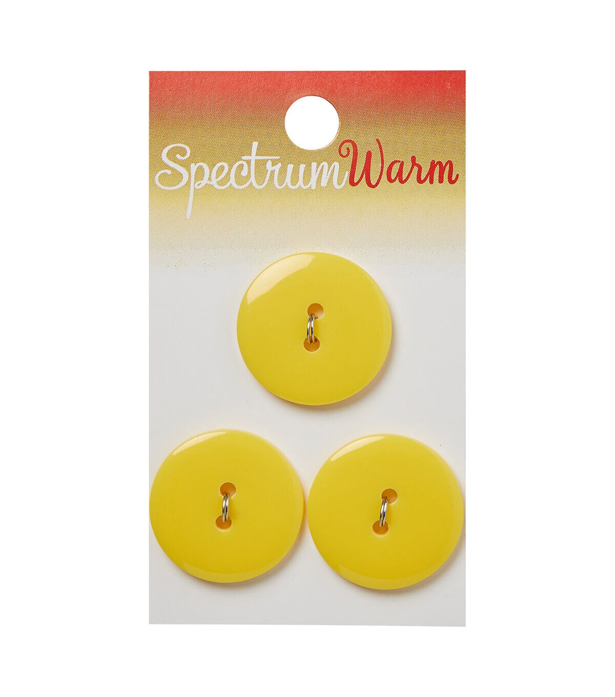 Finish your handmade dress in style with the Spectrum Warm Buttons - Yellow. This pack consists of three buttons sporting a lemony yellow shade that will look perfect on your little one's summer dress. You can also use them to glamorize your kid's shoes or hairbands, or team them with other coordinating buttons, sold separately, to decorate bags, curtains and more.