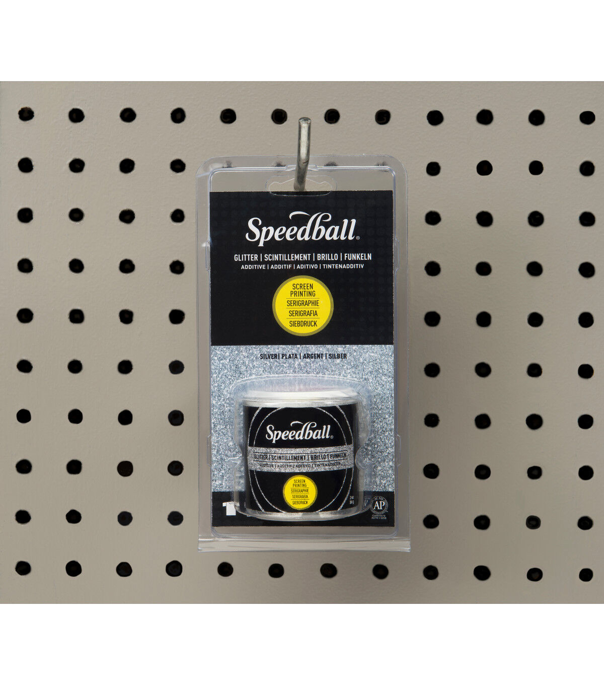 Mix this Glitter Additive Silver Glitter with Speedball Fabric or Acrylic Screen Printing Inks to produce a range of shimmering colors. This glitter can successfully be used with 85 and 110 screen mesh.