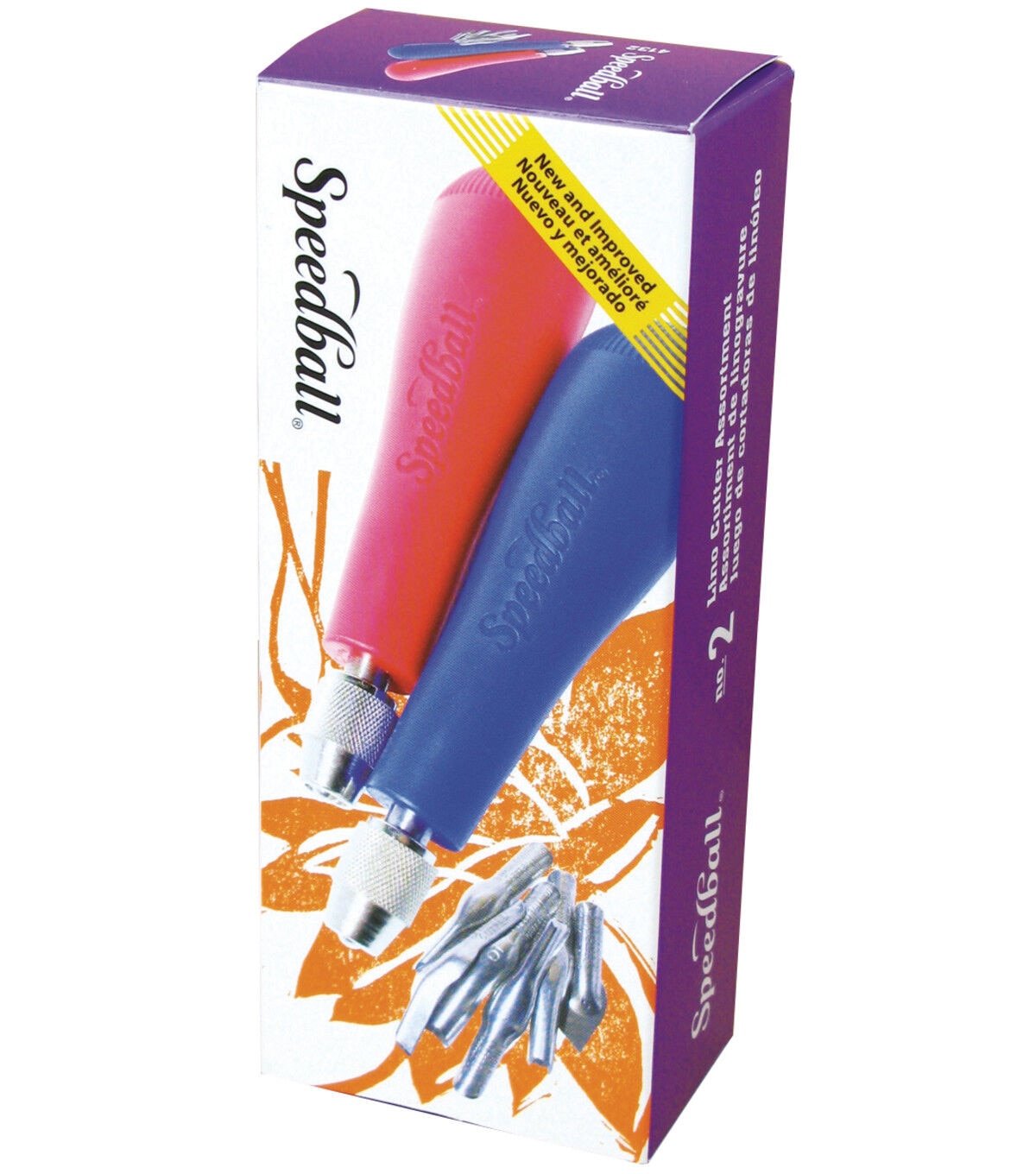 Two adjustable chuck handles, and lino cutters #1, #2, #3, #4, #5 and #6.