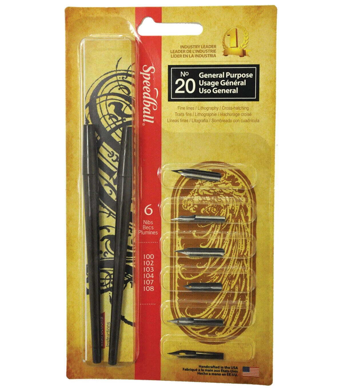 This set contains an assortment of Hunt artist and mapping pens plus two different penholders. An ideal set for making delicate fine lines, lithography, and cross-hatching.