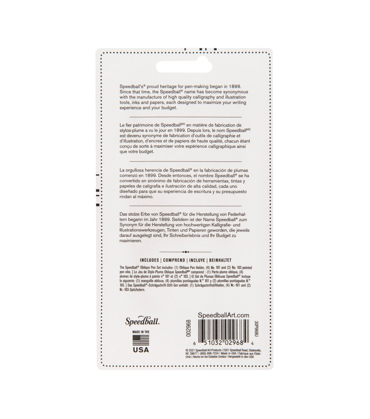 These nibs are designed for Copperplate and Spencerian scripts. The set includes four pen nibs (two each of #101 and #103) and one oblique pen holder.