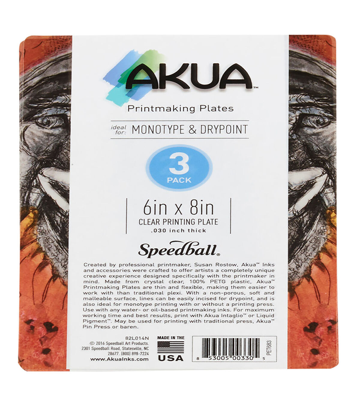 Akua® Printmaking Plates are flexible plastic ideal for Monotype, Carborundum, Collagraph, Drypoint and ImagOn Photopolymer Film. Because of its soft flexibility, this plate is easy to transport from workstation to press, reduces the chance of buckling while you print and is easy to peel away from finished prints.
