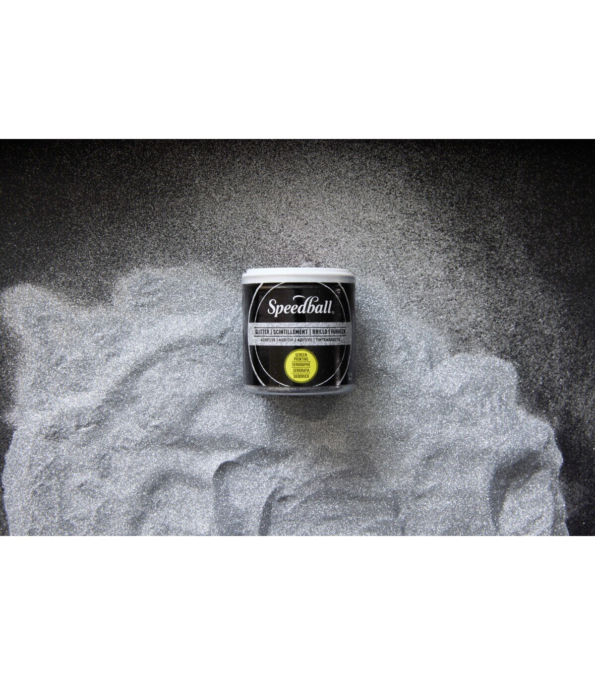 Mix this Silver Glitter Additive with Speedball Fabric or Acrylic Screen Printing Inks to produce a range of shimmering colors. This glitter can successfully be used with 85 and 110 screen mesh