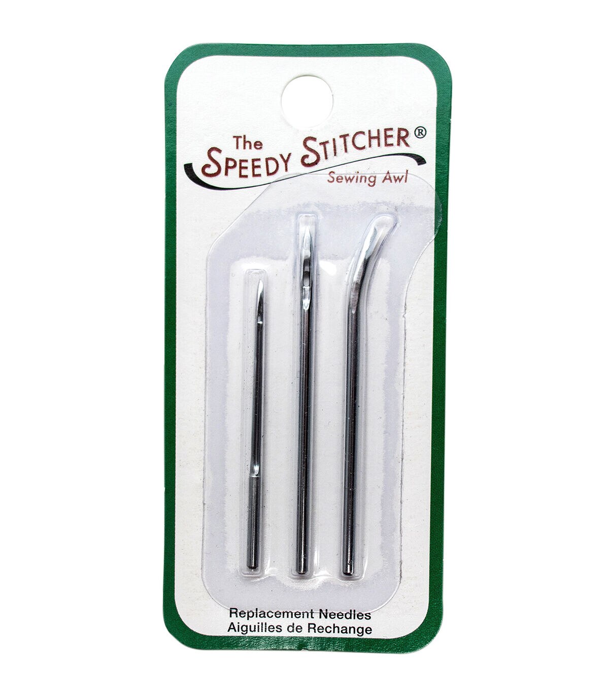 All Speedy Stitcher replacement needles are diamond-point, stainless steel, and made for use with the waxed polyester thread. The 4" is a small, straight needle ideal for use with the fine thread. The 8" needles are large needles ideal for use with the coarse thread.
