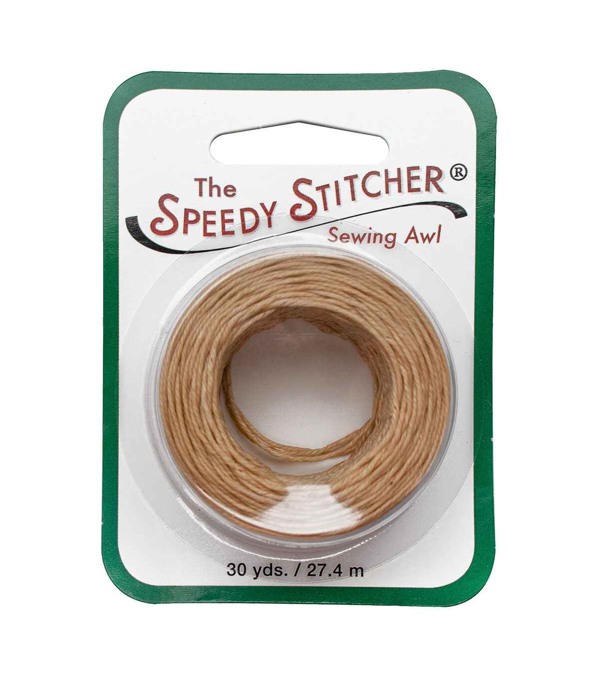 A 30 yd skein of coarse, waxed polyester thread. This four-filament, high-tensile thread is suitable for indoor and outdoor uses. The coarse waxed thread can be used in a variety of projects that require a heavier duty thread. Compatible with the #8 large needles. Natural color.