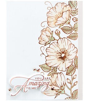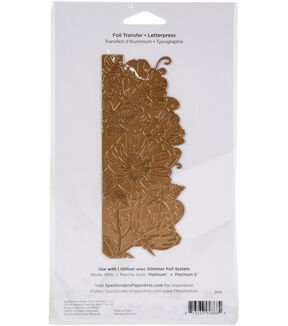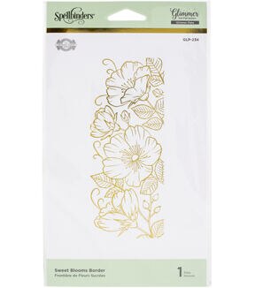 This Sweet Blooms Border Glimmer Hot Foil Plate is a part of the Delicate Impressions Collection by Becca Feeken of Amazing Paper Grace. The plate is a beautiful border of flowers in full bloom to buds that fits an A2-sized (4.25 x 5.5-inch) card front. Use on one edge of the card or cover the entire card and color with watercolor! The Delicate Impressions Collection is a beautiful assembly of classic and delicate motifs to help create marvelous foiled accents for your creations. Combine them with other Amazing Paper Grace sets to have a wonderful array of designs at your fingertips. They are designed to be used with the Spellbinders Glimmer Hot Foil System (or other compatible hot foil system). Approximate Size: 2.32 x 5.50 in./5.90 x 14.00 cm