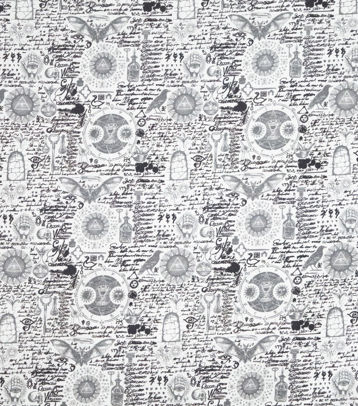 Spells And Potions On White Novelty Cotton Fabric