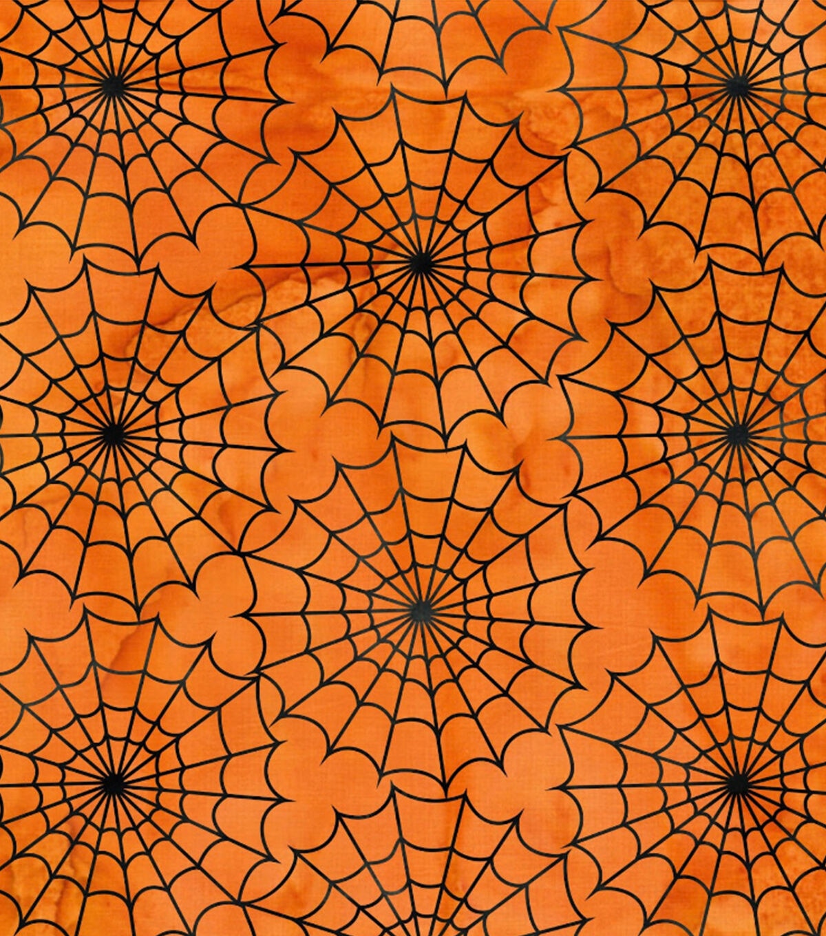 • Spiders On Orange Batik Halloween Cotton Fabric