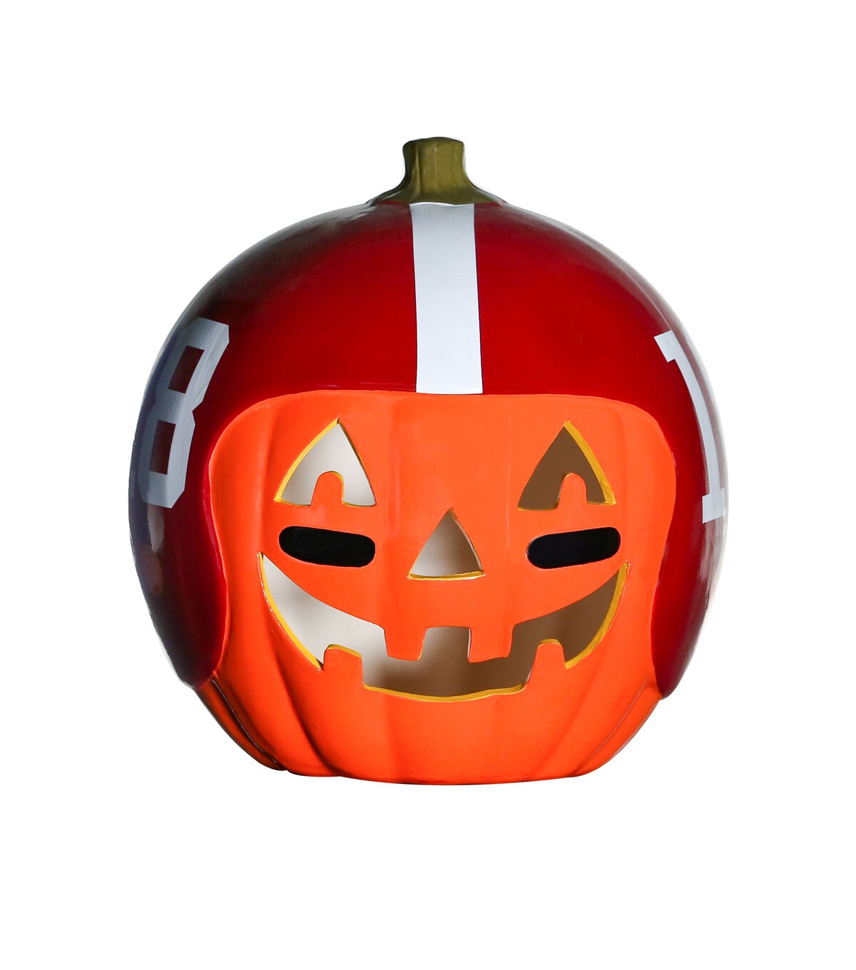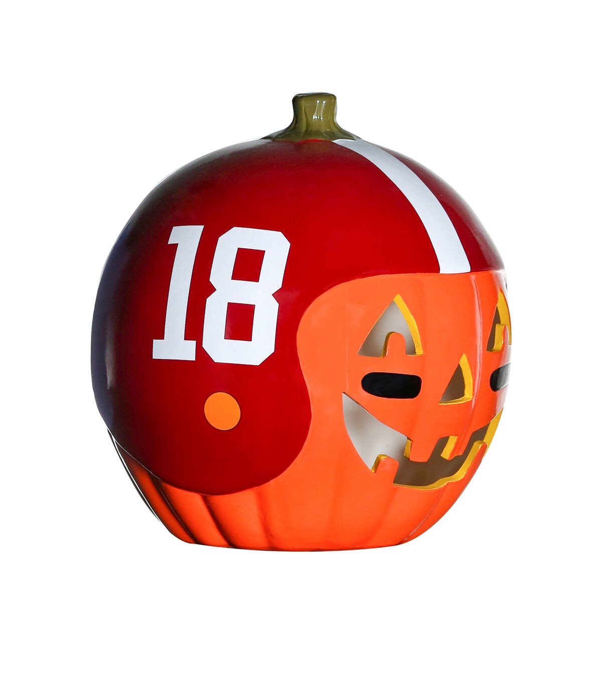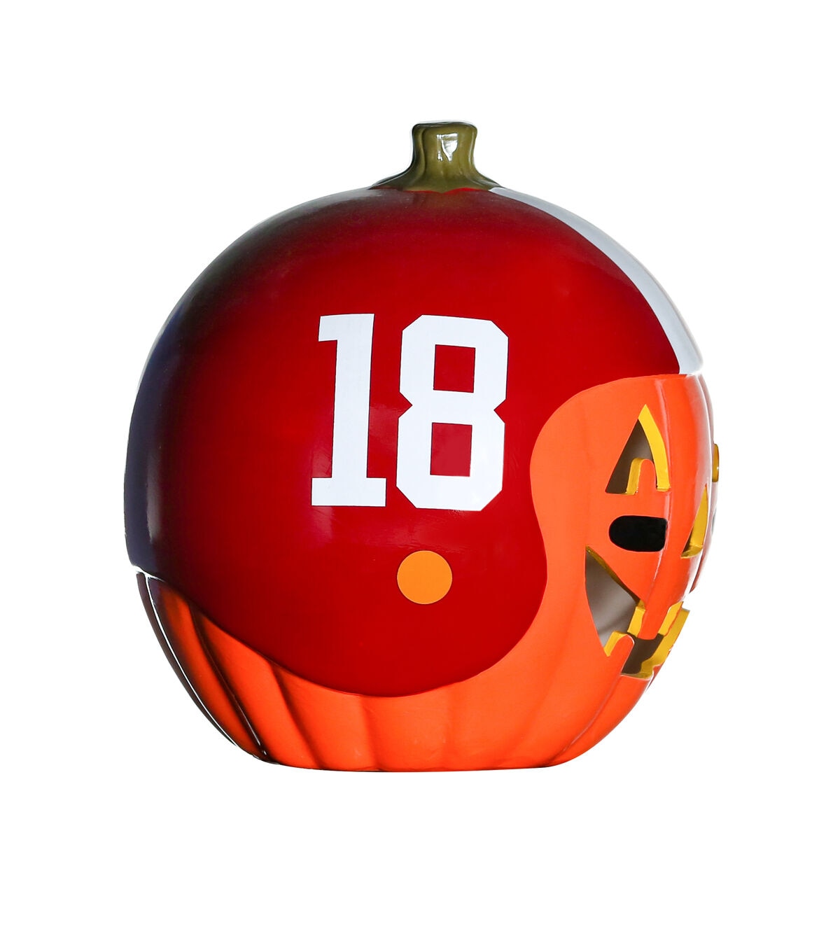 Decorate for fall and football season with our exclusive hand painted 10” Team Pride Ceramic Pumpkin Helmet! This adorable ceramic features a jack-o’-lantern face with logo graphic helmet. Perfect for your front porch or kitchen island!! Bottom access allows you to add a tea light or flameless candle. (not included) Display alone or Teamscape with our Team Pride Color Mum. The ideal gift For the Deep Rooted Fan!