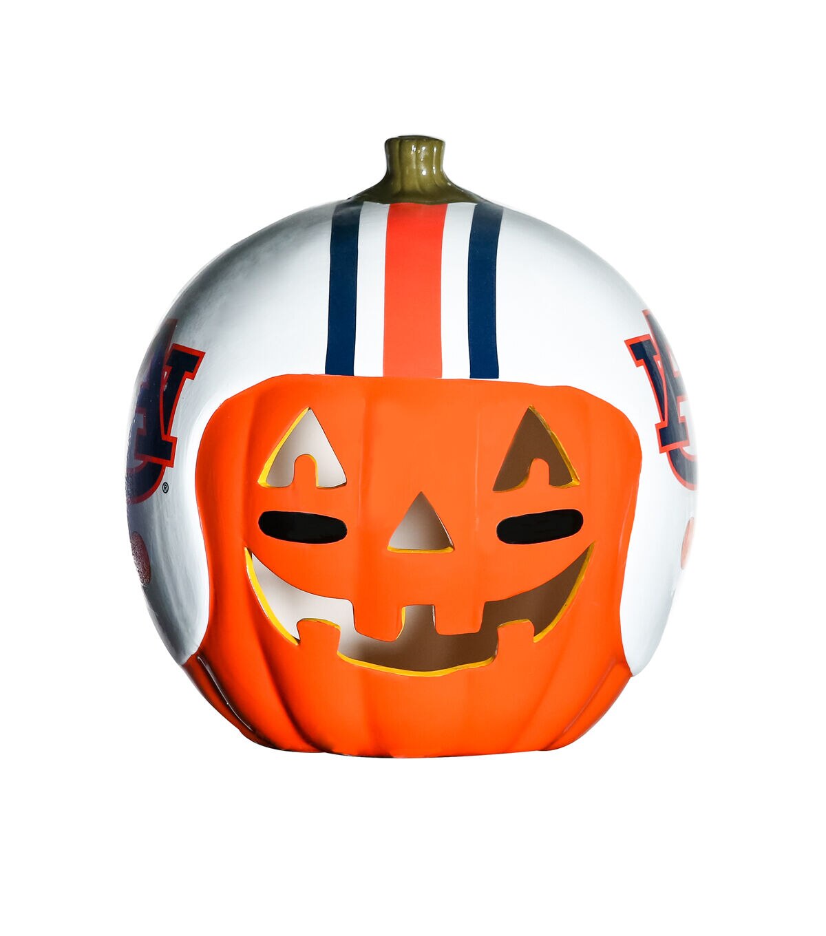 Decorate for fall and football season with our exclusive hand painted 10” Team Pride Ceramic Pumpkin Helmet!  This adorable ceramic features a jack-o’-lantern face with logo graphic helmet.  Perfect for your front porch or kitchen island!!  Bottom access allows you to add a tea light or flameless candle. (not included) Display alone or Teamscape with our Team Pride Color Mum. The ideal gift For the Deep Rooted Fan!