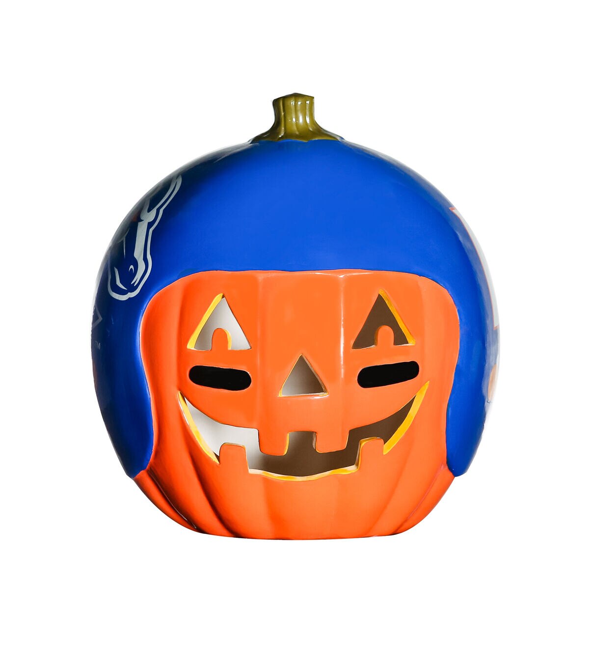 Decorate for fall and football season with our exclusive hand painted 10” Team Pride Ceramic Pumpkin Helmet! This adorable ceramic features a jack-o’-lantern face with logo graphic helmet. Perfect for your front porch or kitchen island!! Bottom access allows you to add a tea light or flameless candle. (not included) Display alone or Teamscape with our Team Pride Color Mum. The ideal gift For the Deep Rooted Fan!
