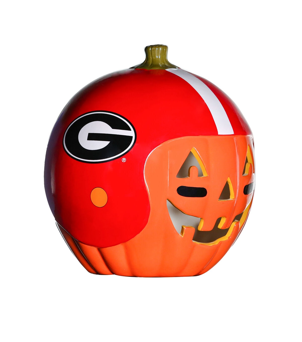 Decorate for fall and football season with our exclusive hand painted 10” Team Pride Ceramic Pumpkin Helmet! This adorable ceramic features a jack-o’-lantern face with logo graphic helmet. Perfect for your front porch or kitchen island!! Bottom access allows you to add a tea light or flameless candle. (not included) Display alone or Teamscape with our Team Pride Color Mum. The ideal gift For the Deep Rooted Fan!