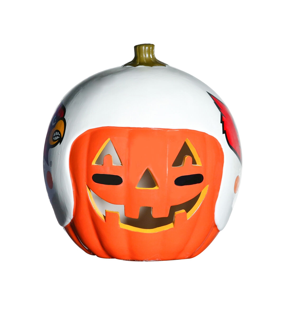 Decorate for fall and football season with our exclusive hand painted 10” Team Pride Ceramic Pumpkin Helmet!  This adorable ceramic features a jack-o’-lantern face with logo graphic helmet.  Perfect for your front porch or kitchen island!!  Bottom access allows you to add a tea light or flameless candle. (not included) Display alone or Teamscape with our Team Pride Color Mum. The ideal gift For the Deep Rooted Fan!