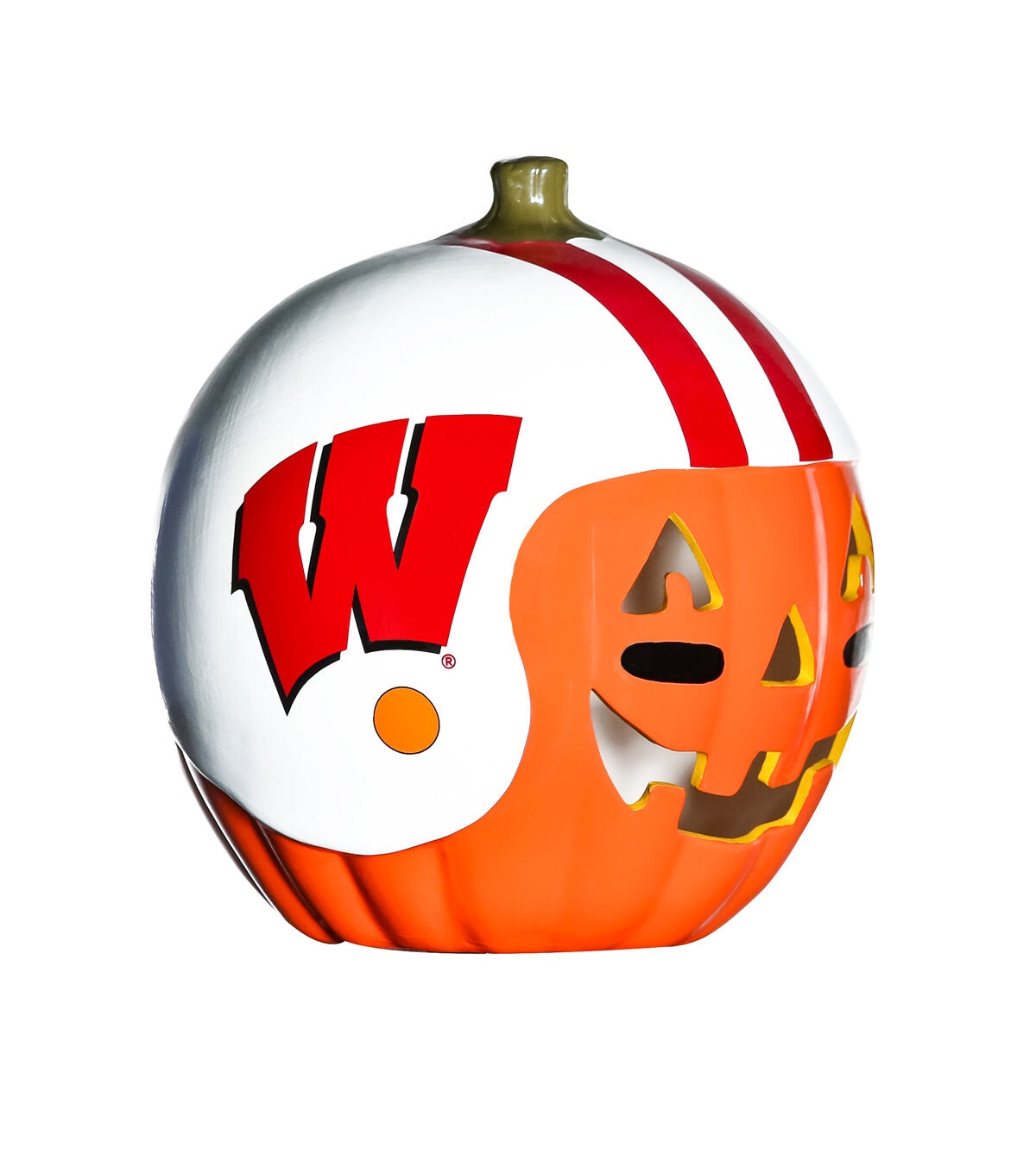 Decorate for fall and football season with our exclusive hand painted 10” Team Pride Ceramic Pumpkin Helmet! This adorable ceramic features a jack-o’-lantern face with logo graphic helmet. Perfect for your front porch or kitchen island!! Bottom access allows you to add a tea light or flameless candle. (not included) Display alone or Teamscape with our Team Pride Color Mum. The ideal gift For the Deep Rooted Fan!
