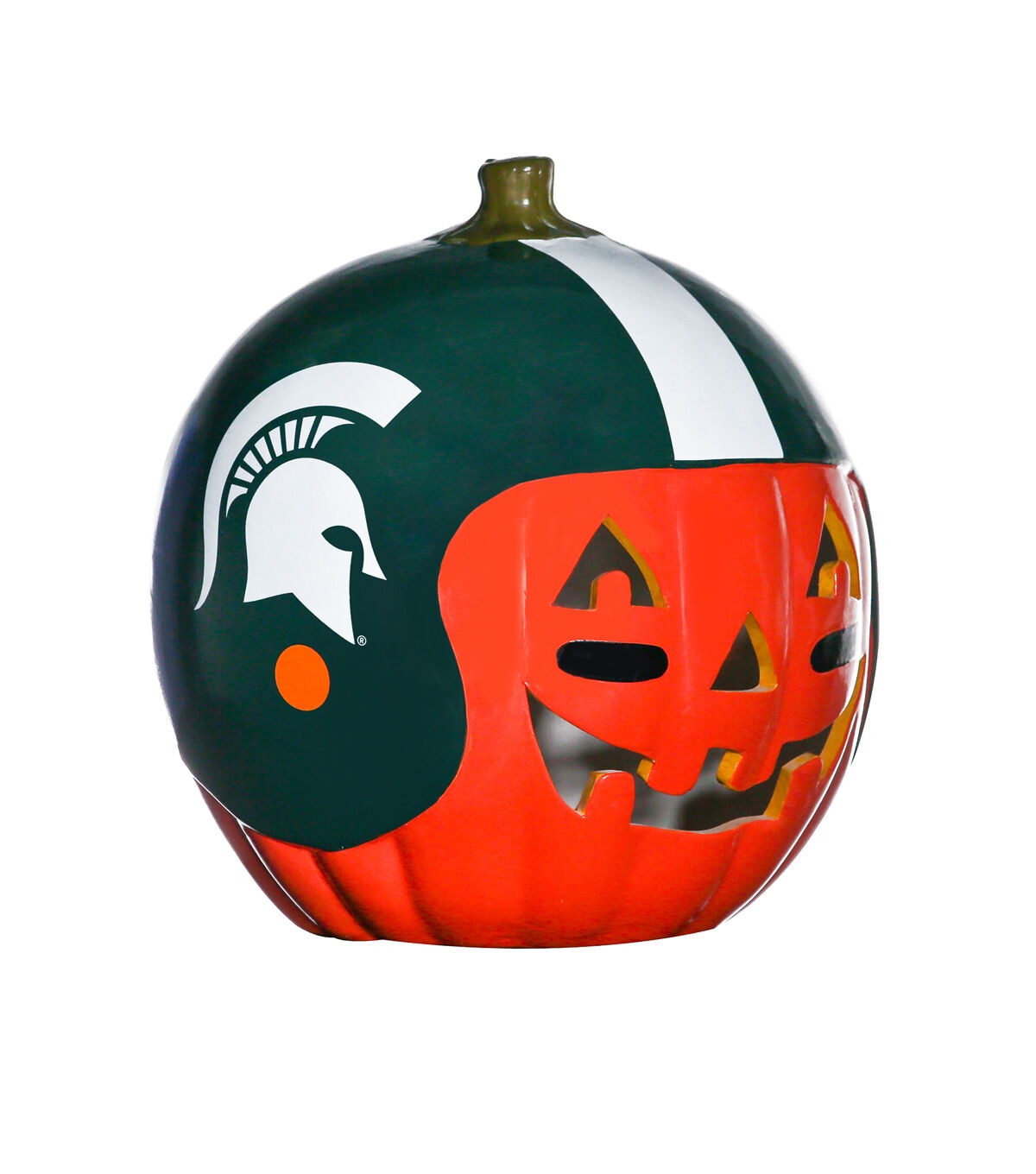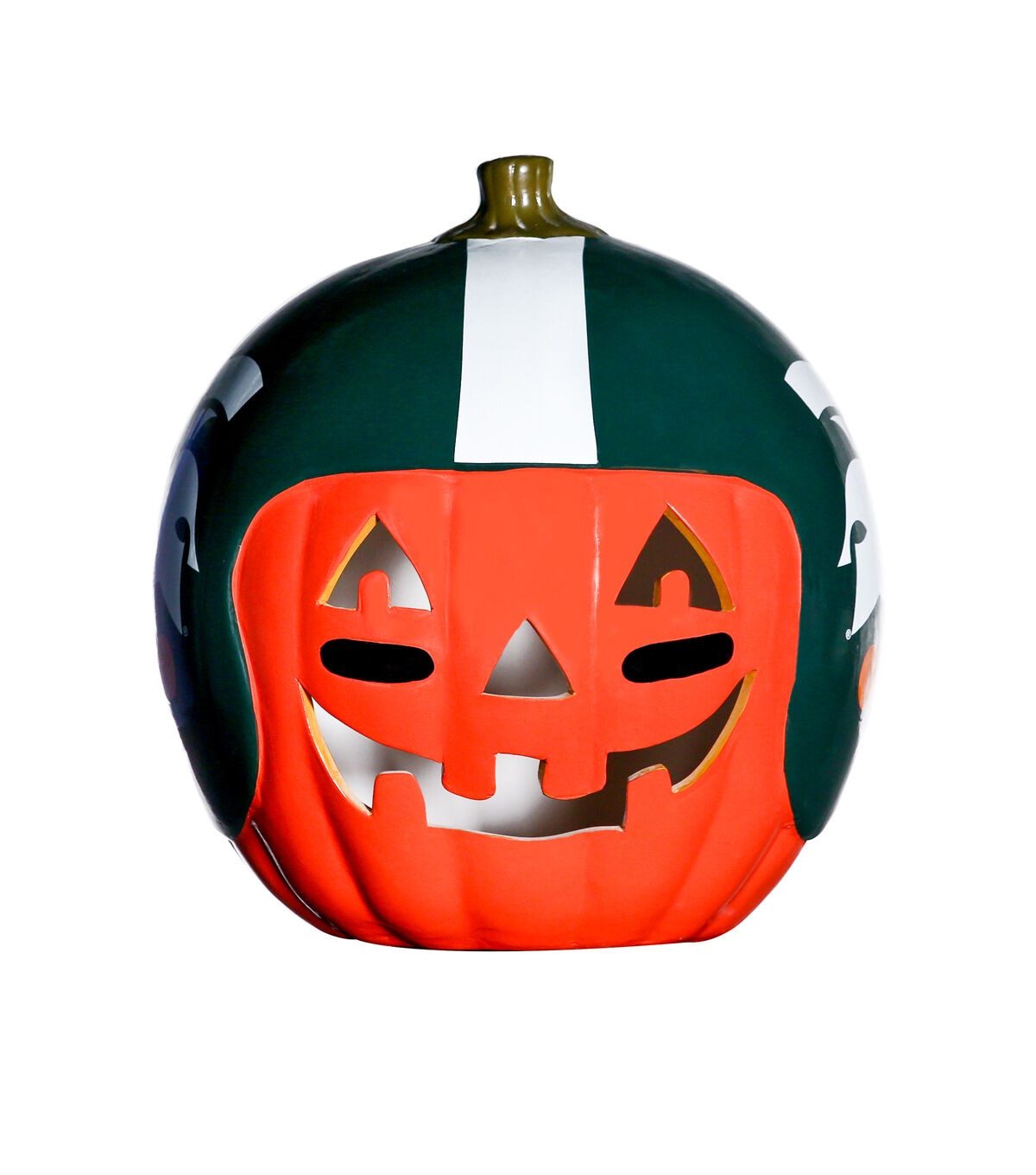 Decorate for fall and football season with our exclusive hand painted 10” Team Pride Ceramic Pumpkin Helmet! This adorable ceramic features a jack-o’-lantern face with logo graphic helmet. Perfect for your front porch or kitchen island!! Bottom access allows you to add a tea light or flameless candle. (not included) Display alone or Teamscape with our Team Pride Color Mum. The ideal gift For the Deep Rooted Fan!