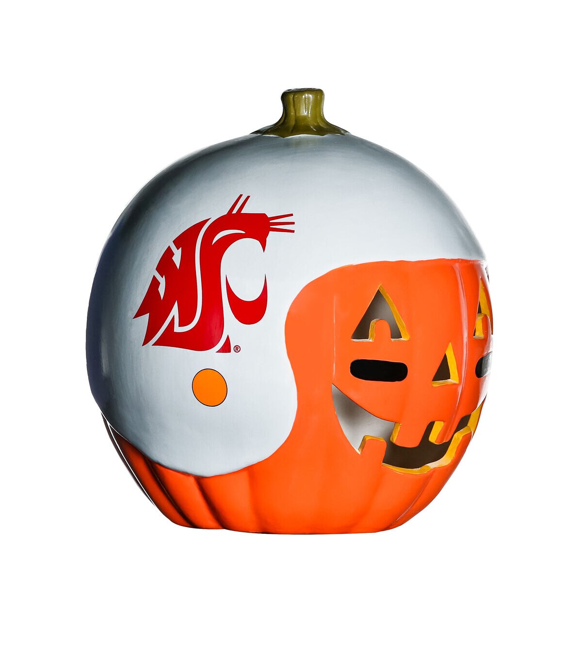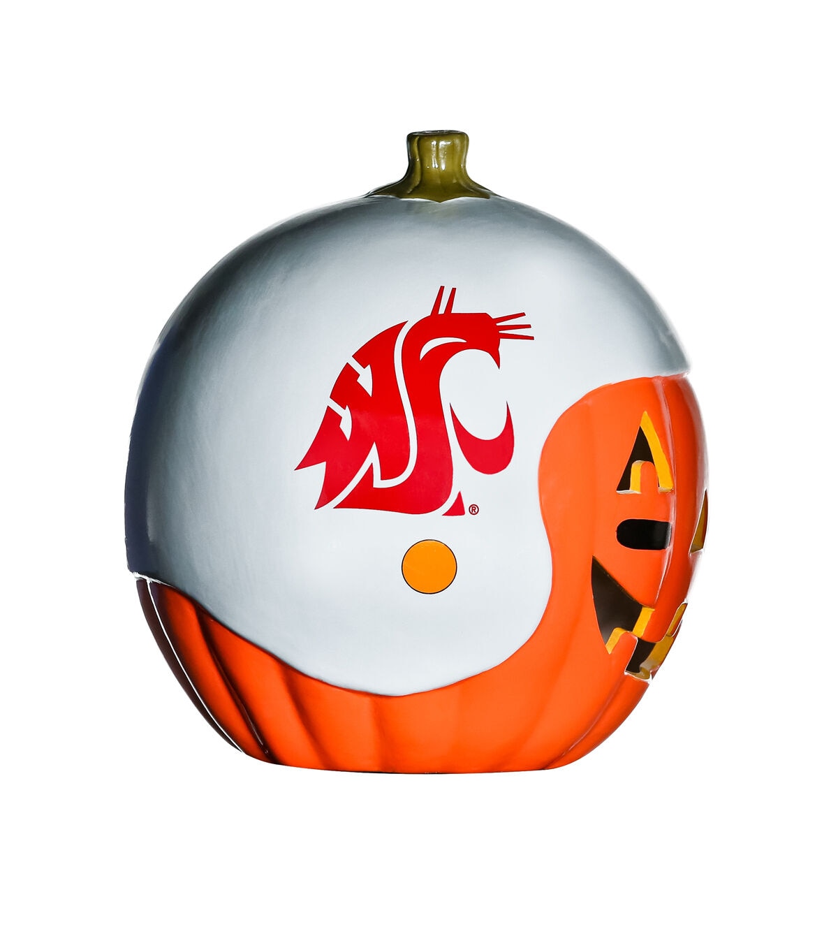 Decorate for fall and football season with our exclusive hand painted 10” Team Pride Ceramic Pumpkin Helmet! This adorable ceramic features a jack-o’-lantern face with logo graphic helmet. Perfect for your front porch or kitchen island!! Bottom access allows you to add a tea light or flameless candle. (not included) Display alone or Teamscape with our Team Pride Color Mum. The ideal gift For the Deep Rooted Fan!