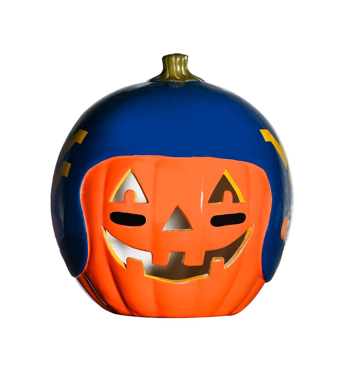 Decorate for fall and football season with our exclusive hand painted 10” Team Pride Ceramic Pumpkin Helmet!  This adorable ceramic features a jack-o’-lantern face with logo graphic helmet.  Perfect for your front porch or kitchen island!!  Bottom access allows you to add a tea light or flameless candle. (not included) Display alone or Teamscape with our Team Pride Color Mum. The ideal gift For the Deep Rooted Fan!