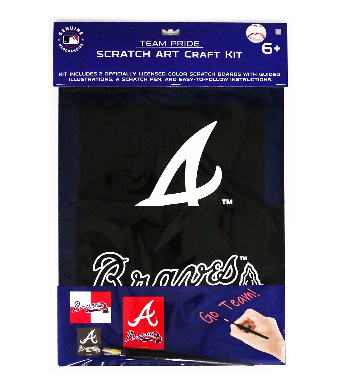 The Team Pride Scratch Art Craft Kit is the perfect DIY activity for young fans! Follow the outline and scratch away the black coated surface to reveal a full color image of your favorite team logo design! Kit includes 2 officially licensed color scratch boards with guided illustrations, scratch pen, and easy-to-follow instructions. Great birthday, gameday or on the go activity! Details and Dimensions: Officially Licensed Approximate Overall Dimensions: 14 inches length x 11 Inches width 1 14” x 11” Preprinted Color Scratch Board 1 8” x10” Preprinted Color Scratch Board Package Dimensions: 17.5 Inches length x 11.5 inches width x .123 inches height 1 Scratch Pen Easy to Follow Instructions Ages 6+ Materials: 180g Cardboard Product Care: Gently wipe or brush any excess black specks from the board surface with a soft cloth or tissue. Product Warning: Scratch pen has a functional sharp point. Do not put residue into your mouth or use them for other purposes. Use under adult supervision.