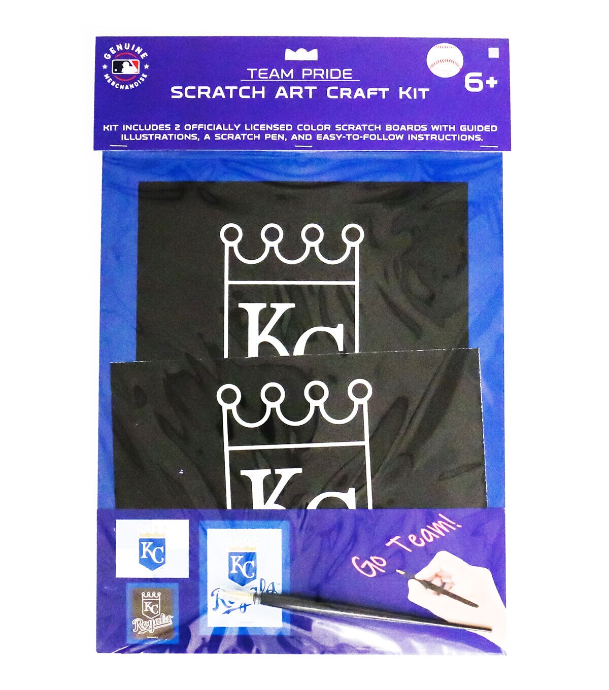 The Team Pride Scratch Art Craft Kit is the perfect DIY activity for young fans! Follow the outline and scratch away the black coated surface to reveal a full color image of your favorite team logo design! Kit includes 2 officially licensed color scratch boards with guided illustrations, scratch pen, and easy-to-follow instructions. Great birthday, gameday or on the go activity! Details and Dimensions: Officially Licensed Approximate Overall Dimensions: 14 inches length x 11 Inches width 1 14” x 11” Preprinted Color Scratch Board 1 8” x10” Preprinted Color Scratch Board Package Dimensions: 17.5 Inches length x 11.5 inches width x .123 inches height 1 Scratch Pen Easy to Follow Instructions Ages 6+ Materials: 180g Cardboard Product Care: Gently wipe or brush any excess black specks from the board surface with a soft cloth or tissue. Product Warning: Scratch pen has a functional sharp point. Do not put residue into your mouth or use them for other purposes. Use under adult supervision.