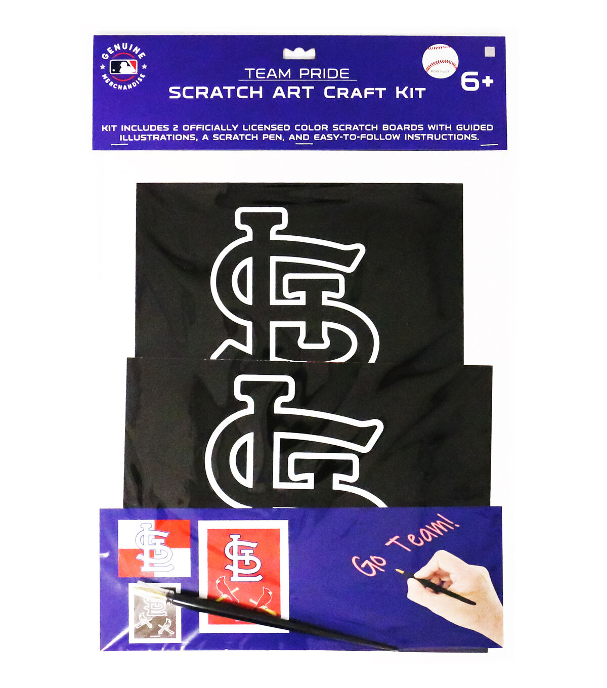 The Team Pride Scratch Art Craft Kit is the perfect DIY activity for young fans! Follow the outline and scratch away the black coated surface to reveal a full color image of your favorite team logo design! Kit includes 2 officially licensed color scratch boards with guided illustrations, scratch pen, and easy-to-follow instructions. Great birthday, gameday or on the go activity! Details and Dimensions: Officially Licensed Approximate Overall Dimensions: 14 inches length x 11 Inches width 1 14” x 11” Preprinted Color Scratch Board 1 8” x10” Preprinted Color Scratch Board Package Dimensions: 17.5 Inches length x 11.5 inches width x .123 inches height 1 Scratch Pen Easy to Follow Instructions Ages 6+ Materials: 180g Cardboard Product Care: Gently wipe or brush any excess black specks from the board surface with a soft cloth or tissue. Product Warning: Scratch pen has a functional sharp point. Do not put residue into your mouth or use them for other purposes. Use under adult supervision.