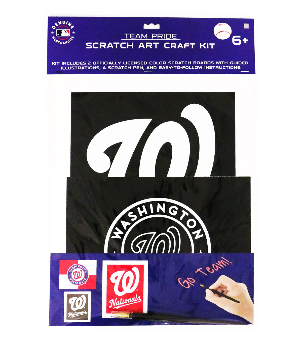 The Team Pride Scratch Art Craft Kit is the perfect DIY activity for young fans! Follow the outline and scratch away the black coated surface to reveal a full color image of your favorite team logo design! Kit includes 2 officially licensed color scratch boards with guided illustrations, scratch pen, and easy-to-follow instructions. Great birthday, gameday or on the go activity! Details and Dimensions: Officially Licensed Approximate Overall Dimensions: 14 inches length x 11 Inches width 1 14” x 11” Preprinted Color Scratch Board 1 8” x10” Preprinted Color Scratch Board Package Dimensions: 17.5 Inches length x 11.5 inches width x .123 inches height 1 Scratch Pen Easy to Follow Instructions Ages 6+ Materials: 180g Cardboard Product Care: Gently wipe or brush any excess black specks from the board surface with a soft cloth or tissue. Product Warning: Scratch pen has a functional sharp point. Do not put residue into your mouth or use them for other purposes. Use under adult supervision.