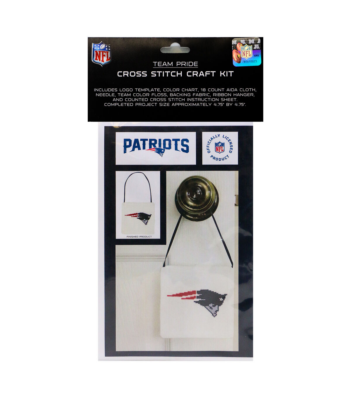 Enter the world of fandom crafting with the officially licensed Team Pride Cross Stitch Craft Kit. Complete with step-by-step instructions, you will create a hand crafted counted cross stitch design of your favorite team logo. When finished, hang on a door, holiday tree or use as a gift tag For The Deep Rooted Fan in your life! Kit includes logo template, color chart, 18 count Aida cloth, needle, team color floss, backing fabric, ribbon hanger, and counted cross stitch instruction sheet. Finished size is approximately 4.75” x 4.75”. Details and Dimensions: Officially Licensed Approximate overall dimensions: 4.75 inches length x 4.75 inches width x 0.125 inches height Package Dimensions: 11.5 inches length x 7 inches width x 0.0625 inches height; 0.025 pounds Made in the USA Team Logo Template Color Chart 18 Count aida cloth Needle Team color Floss Backing Fabric Ribbon Hanger Counted Cross Stitch Instruction Sheet Product Care: Remove dust with lint roller. Spot clean with lightly dampened white cloth away from team color floss. Product Warning: Choking Hazard-small parts and sharp object. Keep away from ink pens and paints. Do not wash or dry clean. Avoid moisture to avoid color floss bleeding.