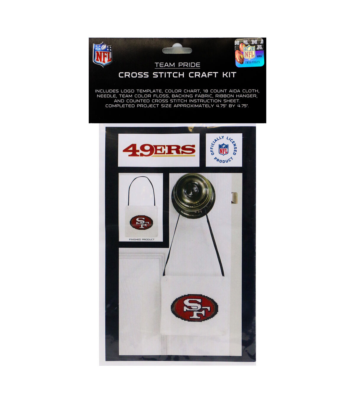 Enter the world of fandom crafting with the officially licensed Team Pride Cross Stitch Craft Kit. Complete with step-by-step instructions, you will create a hand crafted counted cross stitch design of your favorite team logo. When finished, hang on a door, holiday tree or use as a gift tag For The Deep Rooted Fan in your life! Kit includes logo template, color chart, 18 count Aida cloth, needle, team color floss, backing fabric, ribbon hanger, and counted cross stitch instruction sheet. Finished size is approximately 4.75” x 4.75”. Details and Dimensions: Officially Licensed Approximate overall dimensions: 4.75 inches length x 4.75 inches width x 0.125 inches height Package Dimensions: 11.5 inches length x 7 inches width x 0.0625 inches height; 0.025 pounds Made in the USA Team Logo Template Color Chart 18 Count aida cloth Needle Team color Floss Backing Fabric Ribbon Hanger Counted Cross Stitch Instruction Sheet Product Care: Remove dust with lint roller. Spot clean with lightly dampened white cloth away from team color floss. Product Warning: Choking Hazard-small parts and sharp object. Keep away from ink pens and paints. Do not wash or dry clean. Avoid moisture to avoid color floss bleeding.