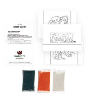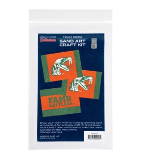 Create sparkling sand inspired fan art with the Team Pride Sand Art Craft Kit! Simply peel back the precut pieces to reveal the sticky board design of your favorite team’s name and logo and sprinkle the Team Color Sand to each area! Sand will adhere to the sticky board creating one-of-a-kind art! An easy craft that requires no cutting or gluing! Makes a great activity for gameday celebrations or outdoor tailgates! Includes 3 boards and Team Color Sand! Details and Dimensions: Officially Licensed Approximate Product Dimensions: 5” x 7” Package Dimensions; weight: 10” Length x 7” Width x .5” height; weight 1pound 2- 5”x7” Team Logo Peel and Stick Boards- Logo Design 1- 5”x7” Team Name Peel and Stick Boards -Team Name Design 3-6 2oz bags of Team Color Sand sorted (quantity may vary) Materials: 100% pure sand-contains no free silica or quartz Easy-to-follow instructions Ages 5 and up Made in Canada Product Care: Smaller areas and details might be difficult to peal by hand. Use a toothpick or sharper type tool carefully to remove. Product Warning: Ages 5 and up (Adult Supervision Recommended)