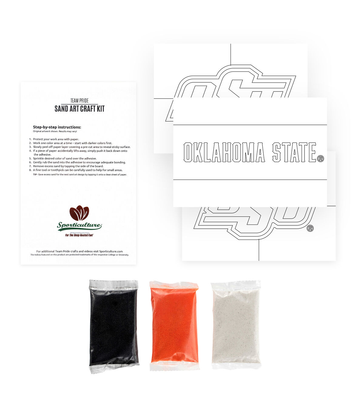 Create sparkling sand inspired fan art with the Team Pride Sand Art Craft Kit! Simply peel back the precut pieces to reveal the sticky board design of your favorite team’s name and logo and sprinkle the Team Color Sand to each area! Sand will adhere to the sticky board creating one-of-a-kind art! An easy craft that requires no cutting or gluing! Makes a great activity for gameday celebrations or outdoor tailgates! Includes 3 boards and Team Color Sand! Details and Dimensions: Officially Licensed Approximate Product Dimensions: 5” x 7” Package Dimensions; weight: 10” Length x 7” Width x .5” height; weight 1pound 2- 5”x7” Team Logo Peel and Stick Boards- Logo Design 1- 5”x7” Team Name Peel and Stick Boards -Team Name Design 3-6 2oz bags of Team Color Sand sorted (quantity may vary) Materials: 100% pure sand-contains no free silica or quartz Easy-to-follow instructions Ages 5 and up Made in Canada Product Care: Smaller areas and details might be difficult to peal by hand. Use a toothpick or sharper type tool carefully to remove. Product Warning: Ages 5 and up (Adult Supervision Recommended)