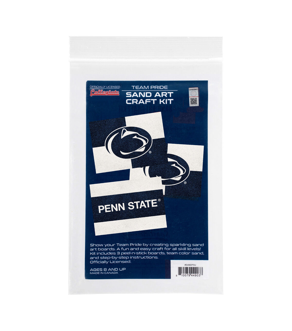 Create sparkling sand inspired fan art with the 10" x 12.5" Sand Art Craft Kit! Simply peel back the precut pieces to reveal the sticky board design of your favorite team’s name and logo and sprinkle the Team Color Sand to each area! Sand will adhere to the sticky board creating one-of-a-kind art! An easy craft that requires no cutting or gluing! Makes a great activity for gameday celebrations or outdoor tailgates! Includes 3 boards and Team Color Sand! Details and Dimensions: Officially Licensed Approximate Product Dimensions: 5” x 7” Package Dimensions; weight: 10” Length x 7” Width x .5” height; weight 1pound 2- 5”x7” Team Logo Peel and Stick Boards- Logo Design 1- 5”x7” Team Name Peel and Stick Boards -Team Name Design 3-6 2oz bags of Team Color Sand sorted (quantity may vary) Materials: 100% pure sand-contains no free silica or quartz Easy-to-follow instructions Ages 5 and up Made in Canada Product Care: Smaller areas and details might be difficult to peal by hand. Use a toothpick or sharper type tool carefully to remove. Product Warning: Ages 5 and up (Adult Supervision Recommended)