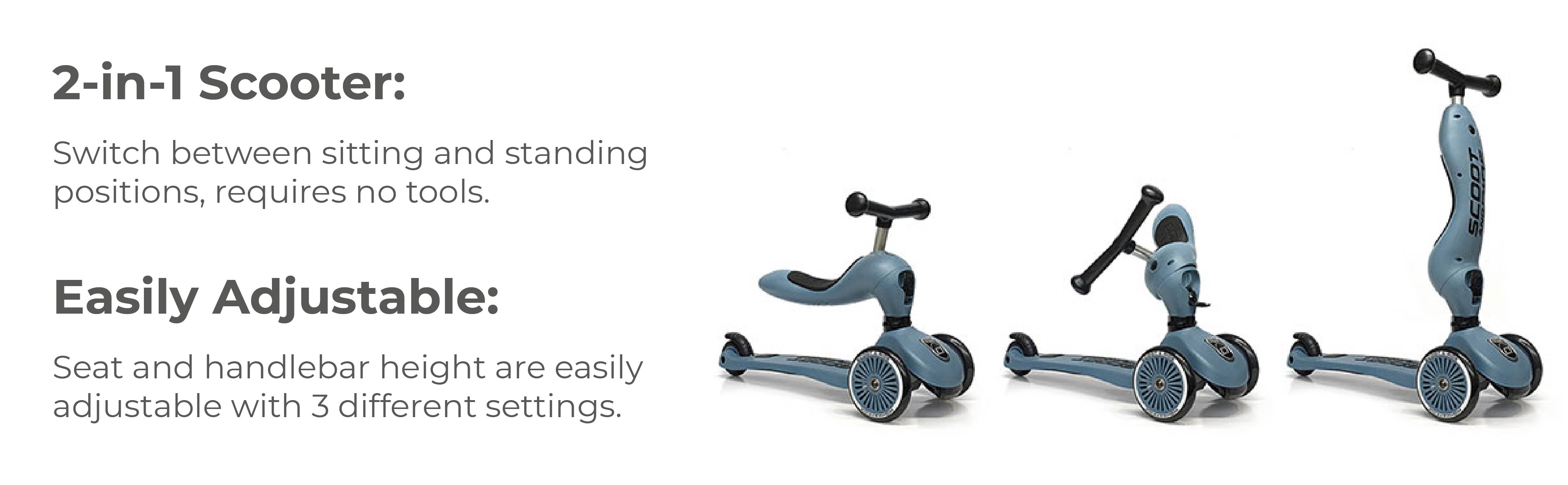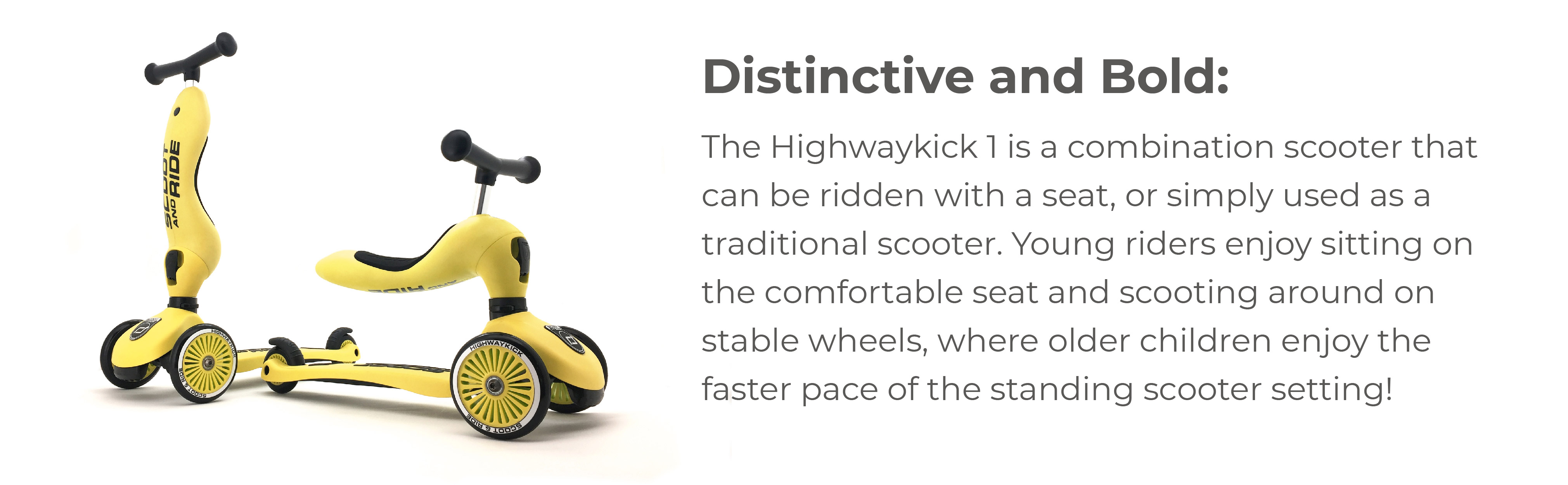 2-IN-1 FUN: the Highwaykick 1 is a combination scooter that can be ridden with a seat like a tricycle, or simply used as a traditional scooter.