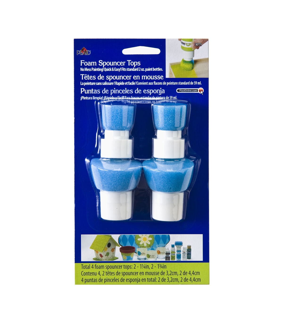 Foam Spouncer Tops- No Mess Painting! Quick & Easy! Fits standard 2 ounce paint bottles. Includes: 2- 1.25 inch and 2- 1.75 inch