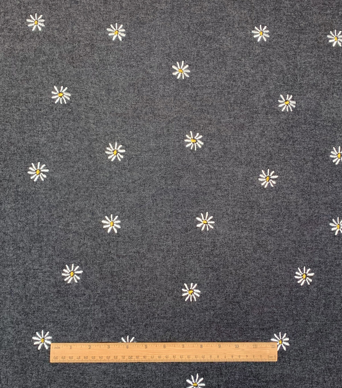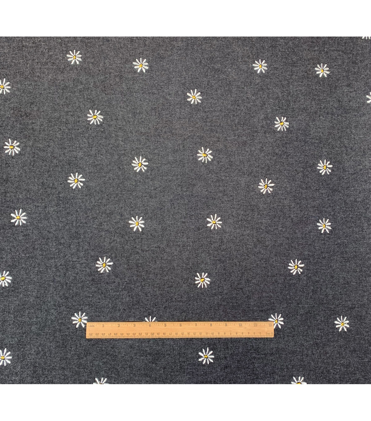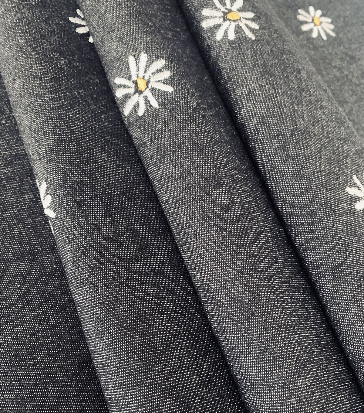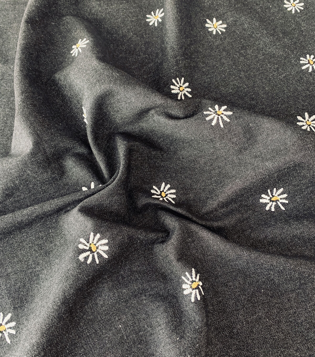 • Spring Black Daisy Denim Fabric