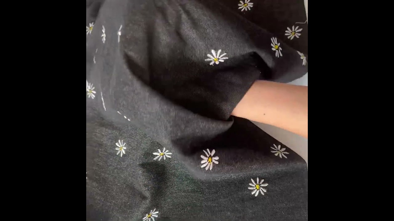Spring Black Daisy Denim Fabric