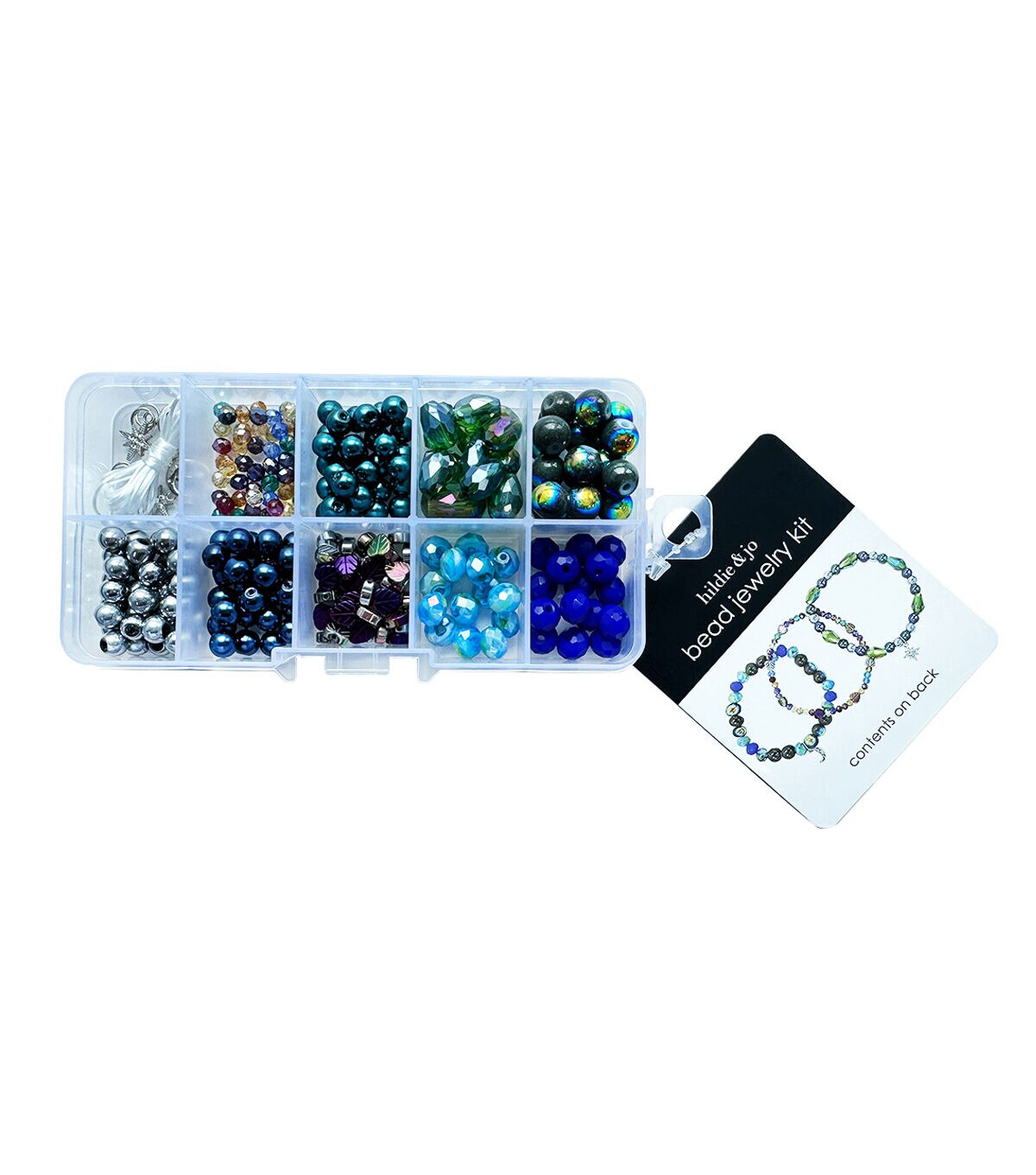 The Spring Blue & Green Celestial Bead Kit by hildie & jo will make a useful addition to your jewelry-making supplies. This kit includes glass beads in eye-catching hues, charms, jump rings and stretch cord. Use them to create beautiful bracelets for your friends. You can also decorate papercrafting projects with these beads.