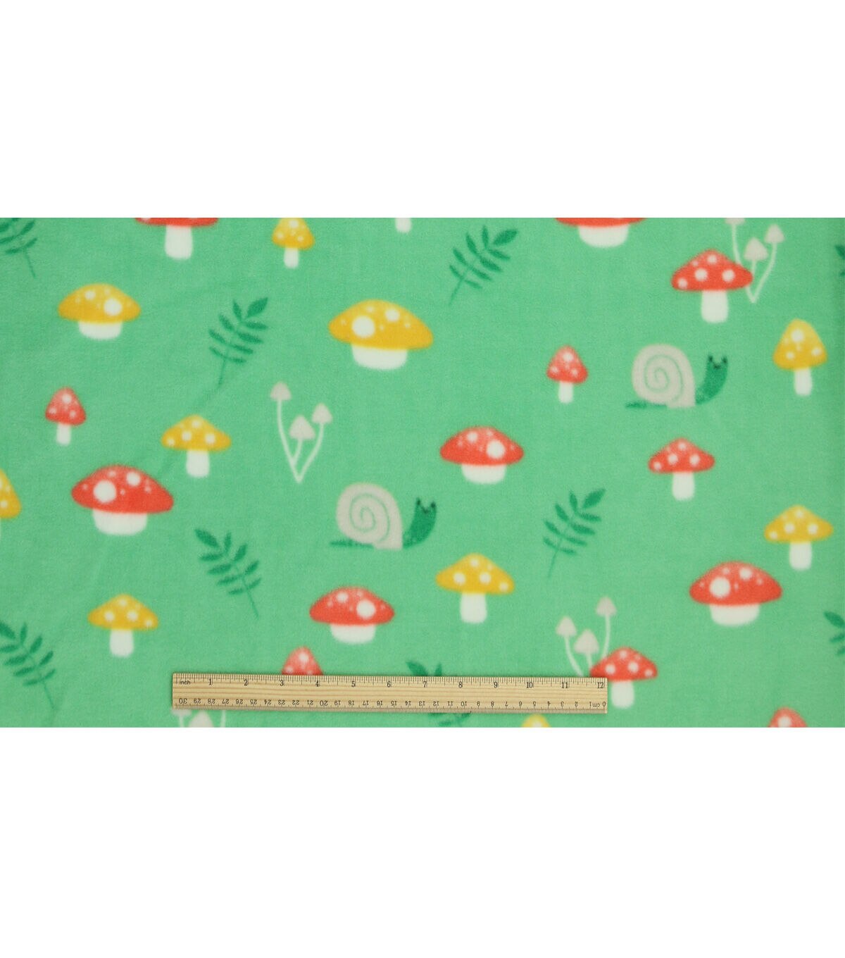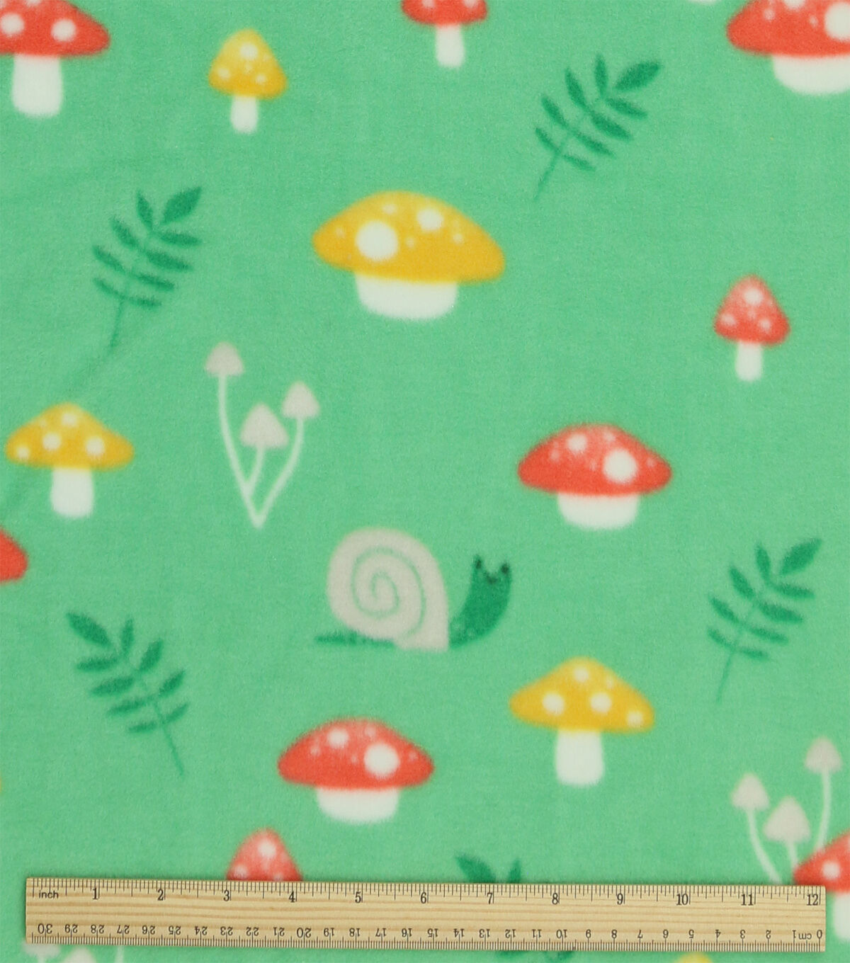 Get Cozy with Spring Mushrooms on Green Anti Pill Plush Fleece Fabric by POP!