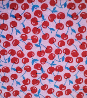 • Spring Red Printed Terry Cherries Terry Cloth Fabric