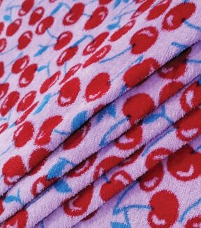 Spring Red Printed Terry Cherries Terry Cloth Fabric