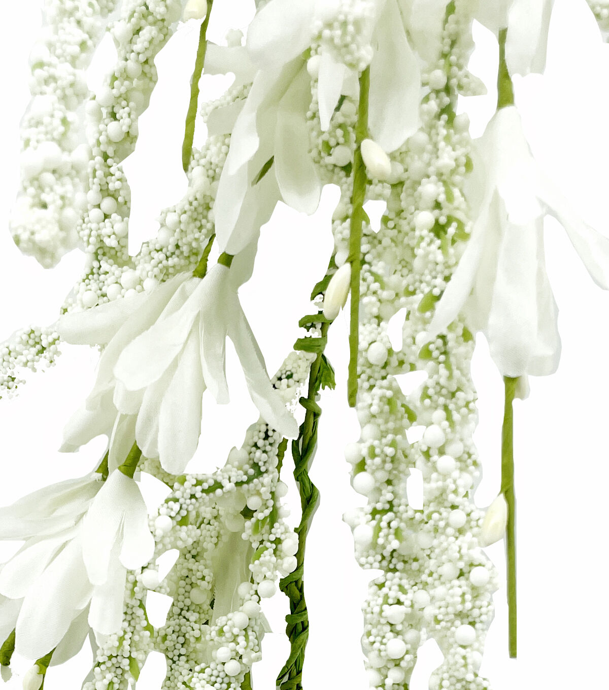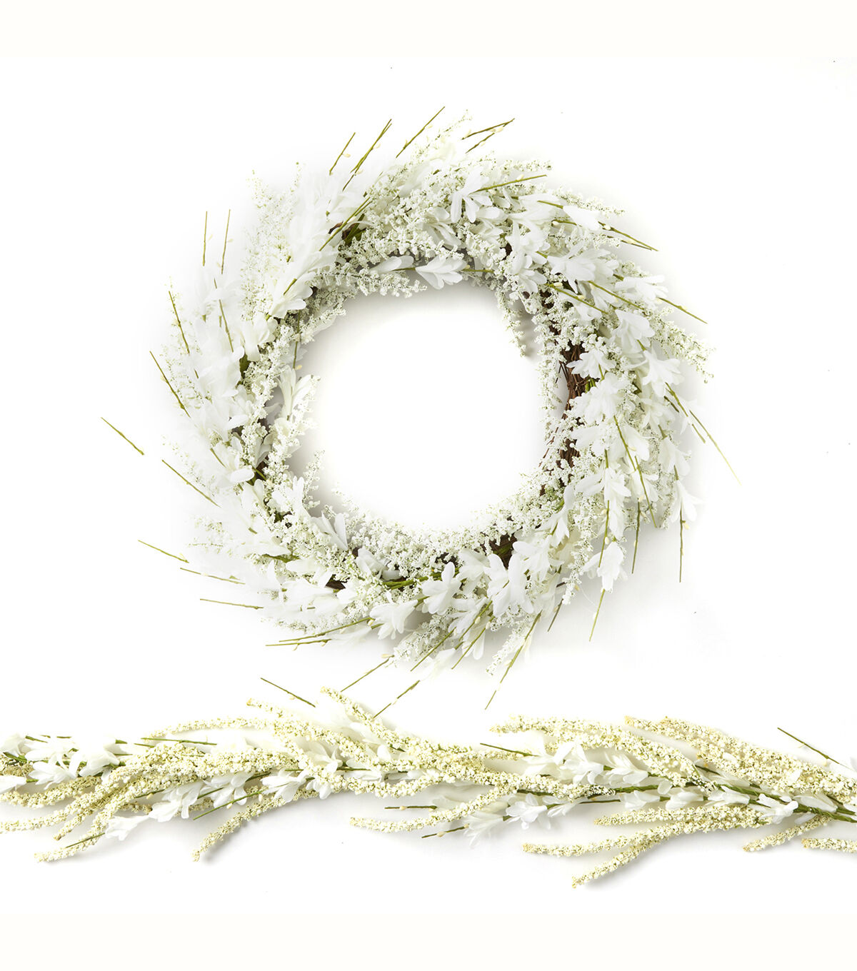 Celebrate your springtime festivities with a statement accent like the Bloom Room Spring Forsythia Wreath & Garland. Both floral pieces display gorgeous forsythia flowers and berries in a white shade. You can hang both on the front door or mantelshelf.