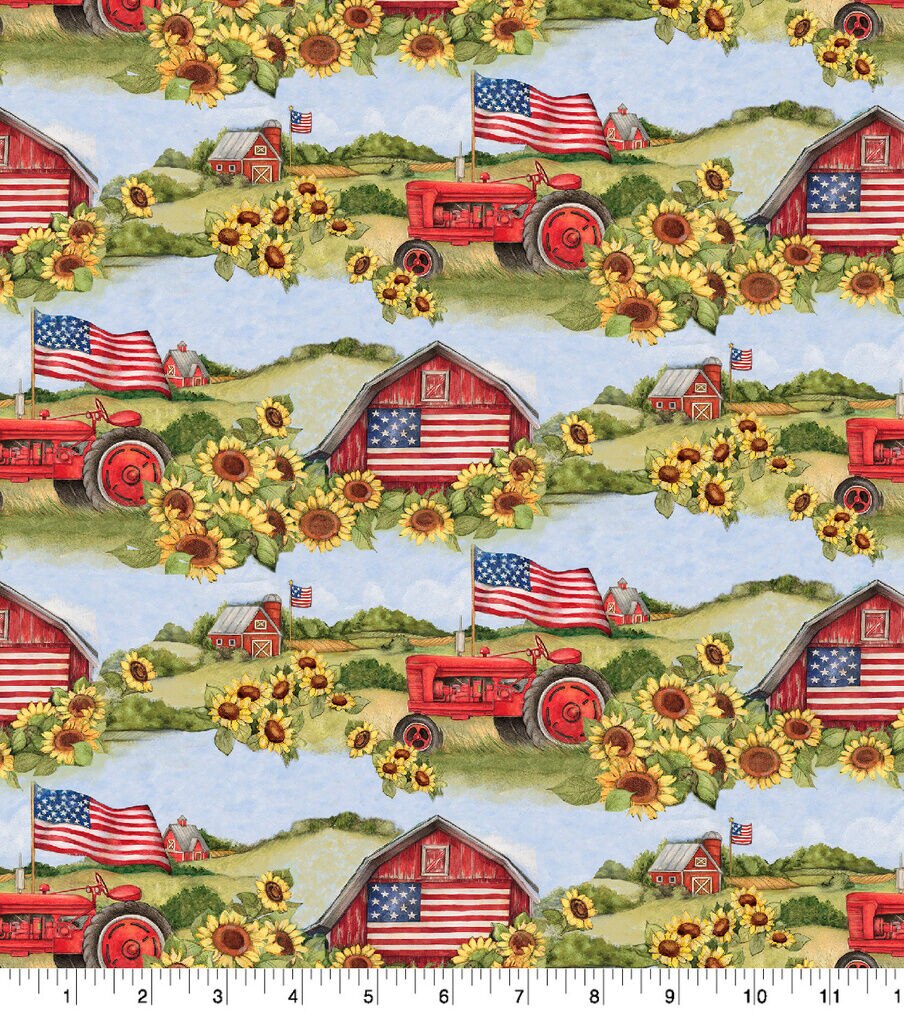 Get Patriotic with Springs Creative American Farmhouse on Blue Patriotic Cotton Fabric
