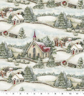 • Springs Creative Country Church Christmas Cotton Fabric