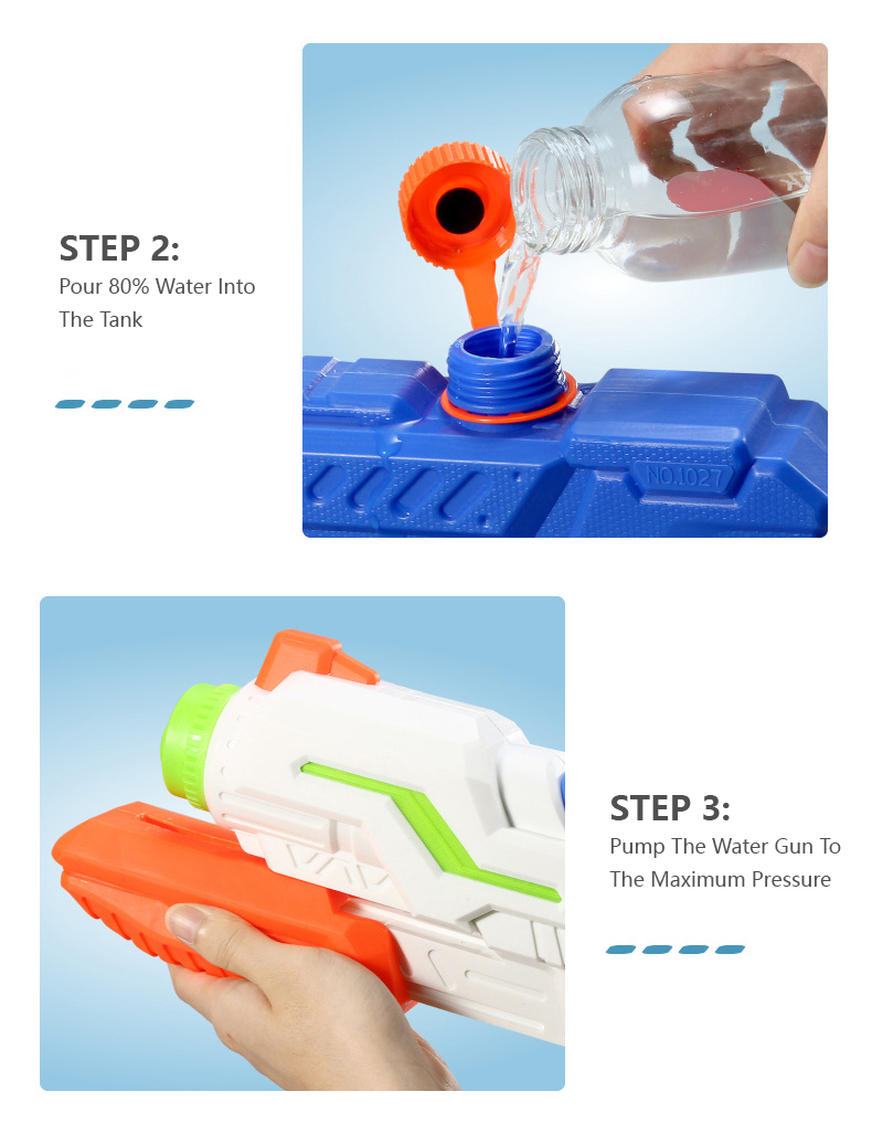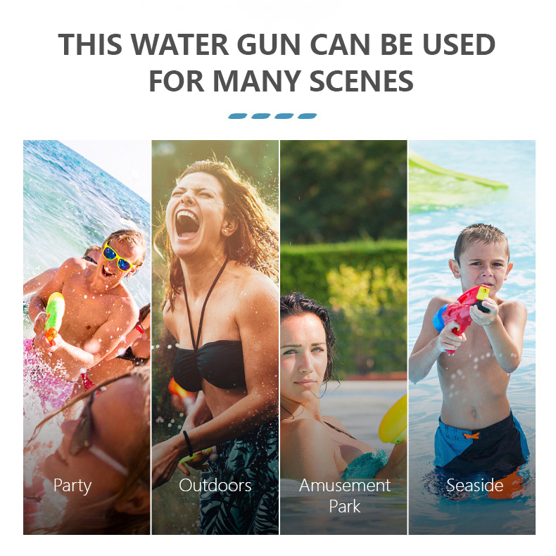 Bring the super water soaker guns for all ages to the summer pool parties or outdoor play, then release endless cool fun! Perfect water tank capacity allows kids to move faster in a water fight, ergonomically designed handle even allows you to play with your child!