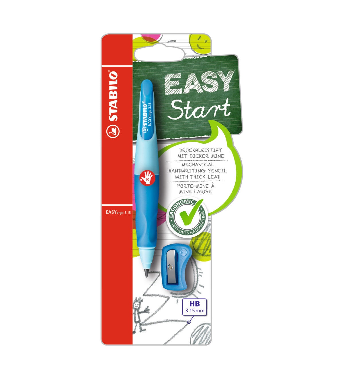 Learning to write can be challenging, and the right tools can make the process easier - even enjoyable. Specially developed for children who are learning to write right-handed, the EASYergo mechanical pencil makes writing fun, comfortable and inviting. This pencil features ergonomic grip zones that allow a relaxed hold to prevent cramping and muscle fatigue when writing or drawing. This pencil even features a small space for a beginner to write their name on it, truly making the writing process their own.