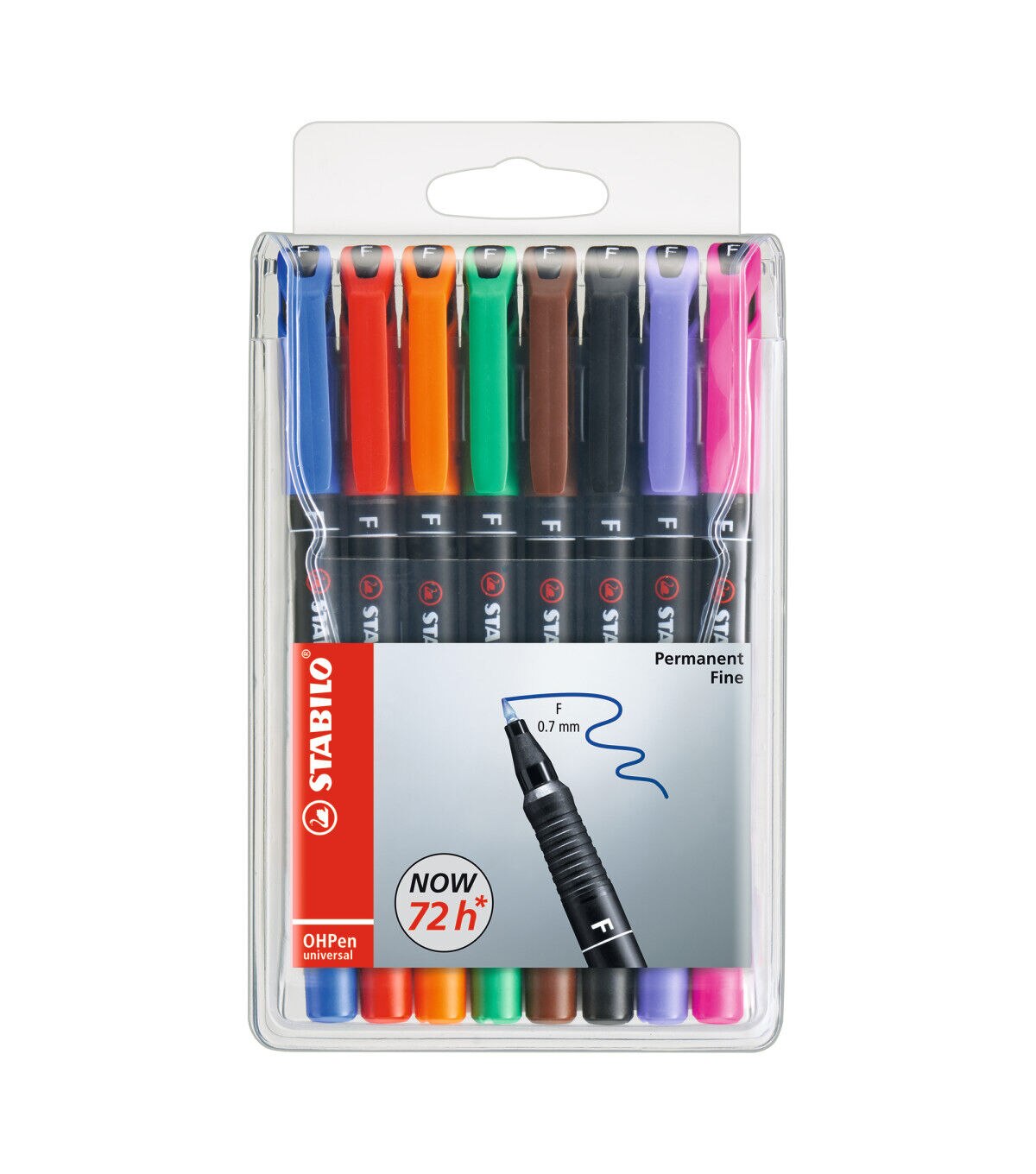 These versatile pens are the optimal choice when it comes to overhead projection, and also work great on almost all other smooth surfaces. The OH Pens have permanent ink and a .7mm fine tip. The body has a non-slip grip zone to ensure optimal control. The ventilated cap has a practical clip.