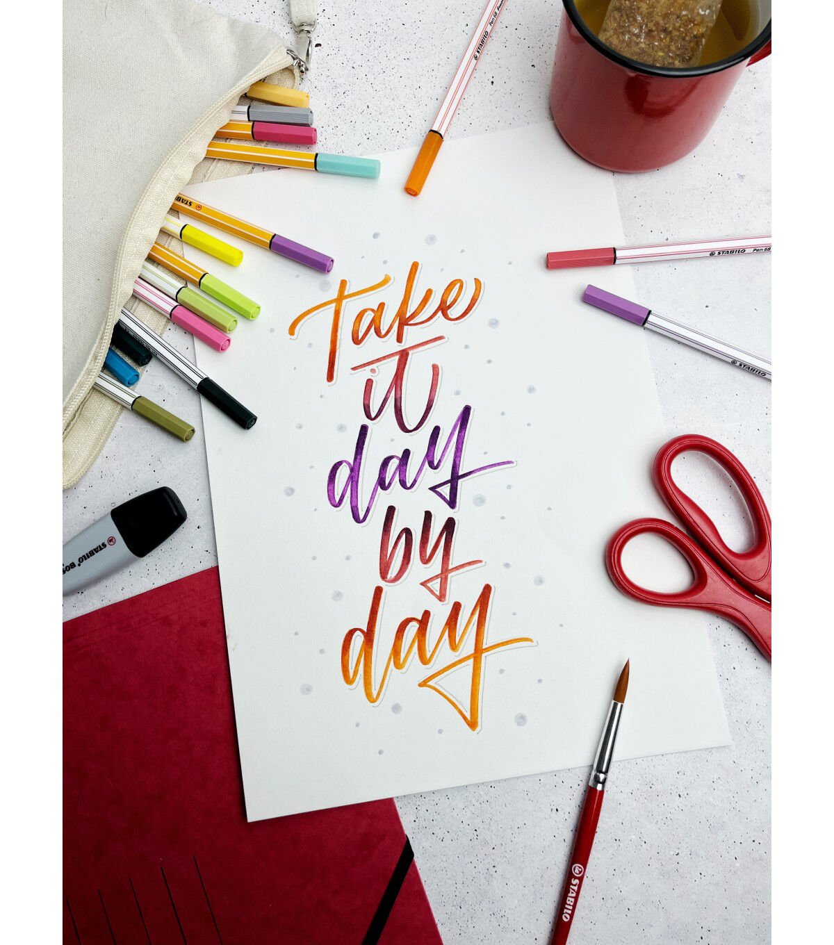 This Pen 68 Brush Marker provides thick and thin lines in brilliant colors, with a tip especially designed for beginners yet perfect for advanced artists too! Ideal for color progression, blending, watercolor effects and brush lettering. Give your bullet journals, greeting cards and other DIY projects a beautiful, colorful look.