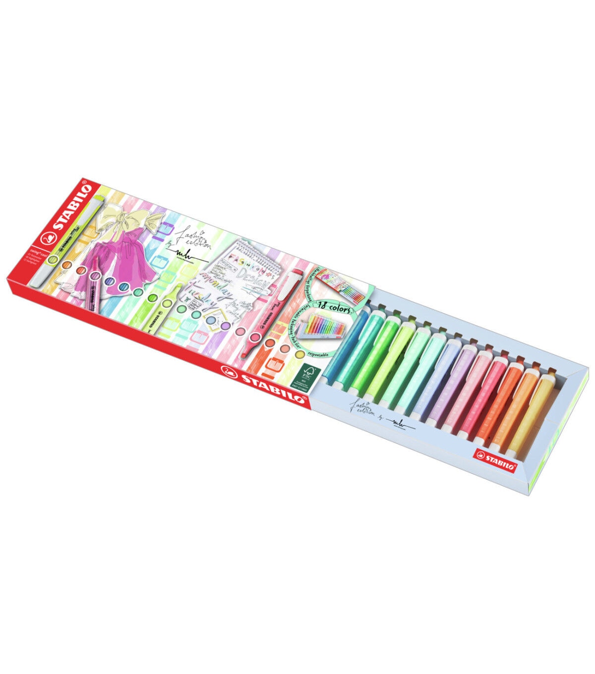 These flat, pocket-sized highlighters feature a glossy and striped look and a non-slip, matte-finish grip zone. The fluorescent and pastel inks are ideal for paper, copies and faxes. The 18-Piece Deskset includes eight fluorescent and ten pastel colors.