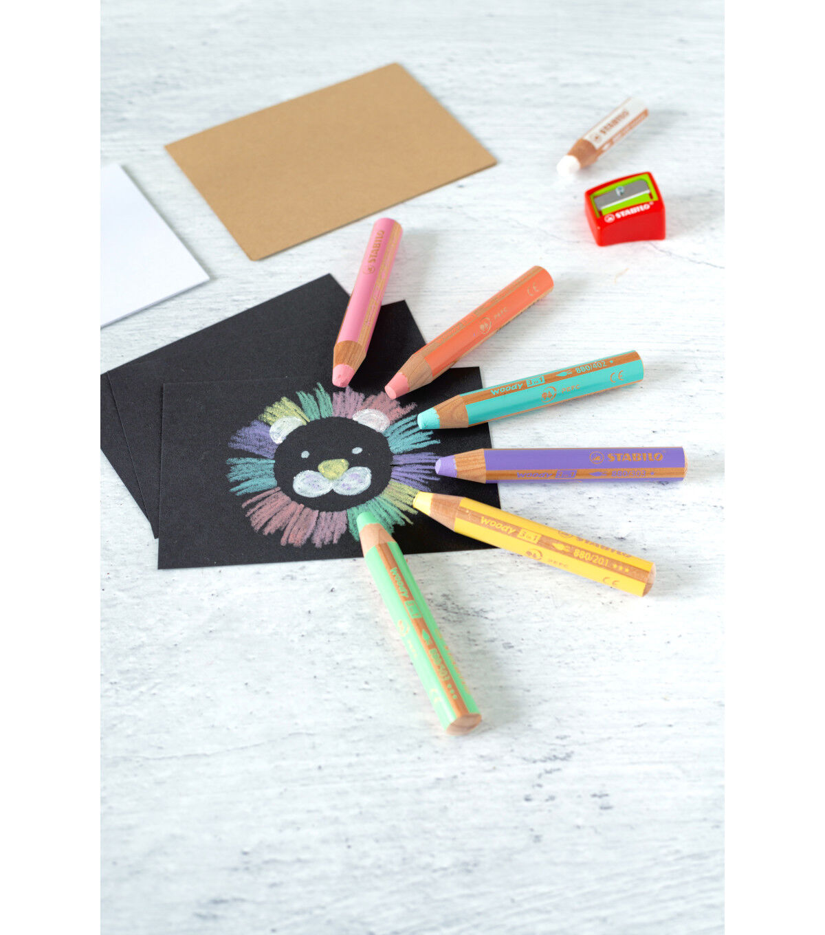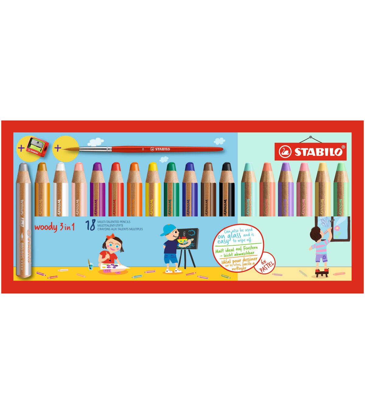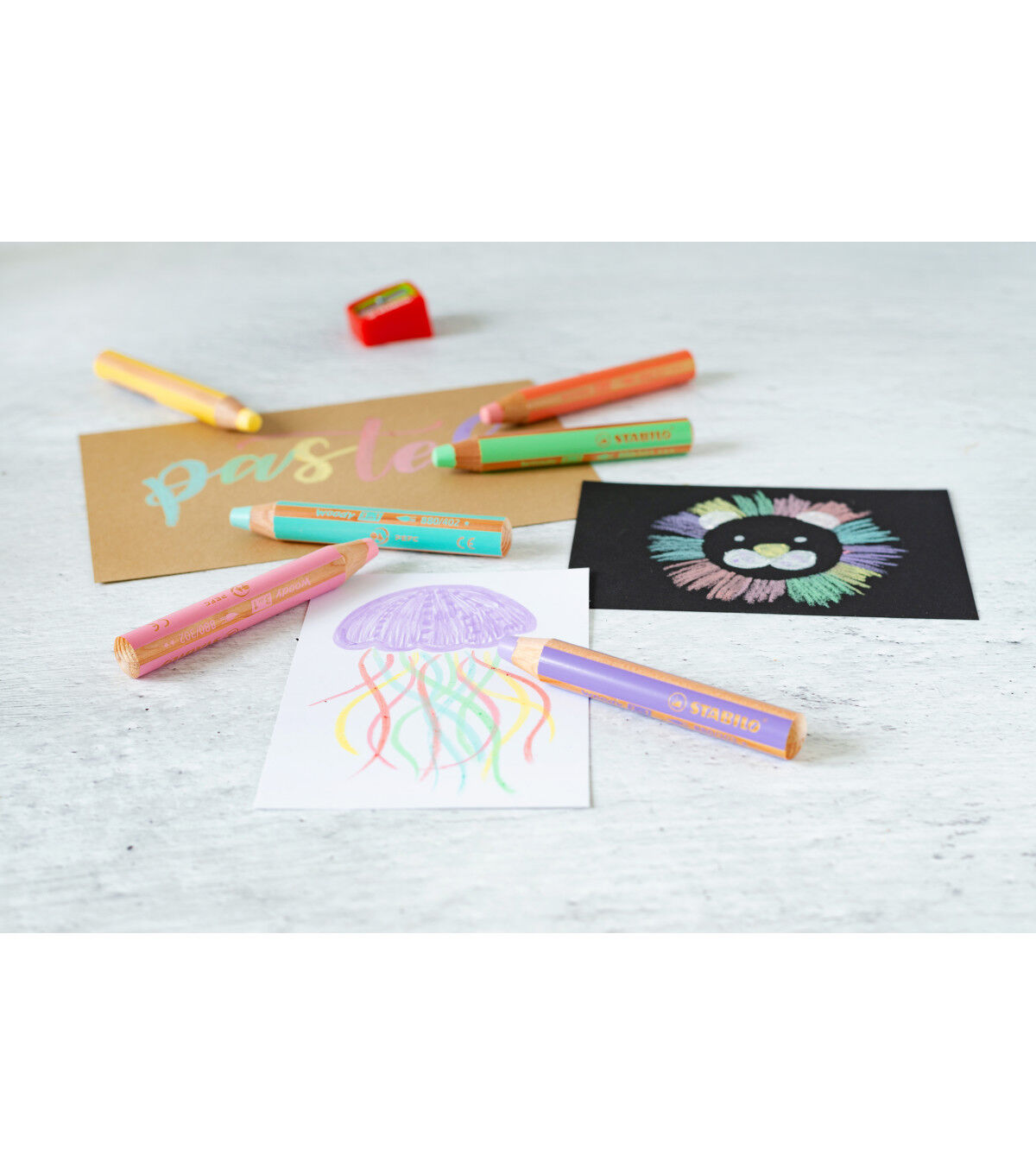This chunky pencil functions as a colored pencil, watercolor and wax crayon in one. It is ideal for numerous techniques, endless imagination, and features 10mm lead. Outstanding watercolor properties make it ideal for painting with. The highly pigmented, lead is not prone to breakage. It exhibits color intensity even on dark papers. It can also write on smooth surfaces like glass.