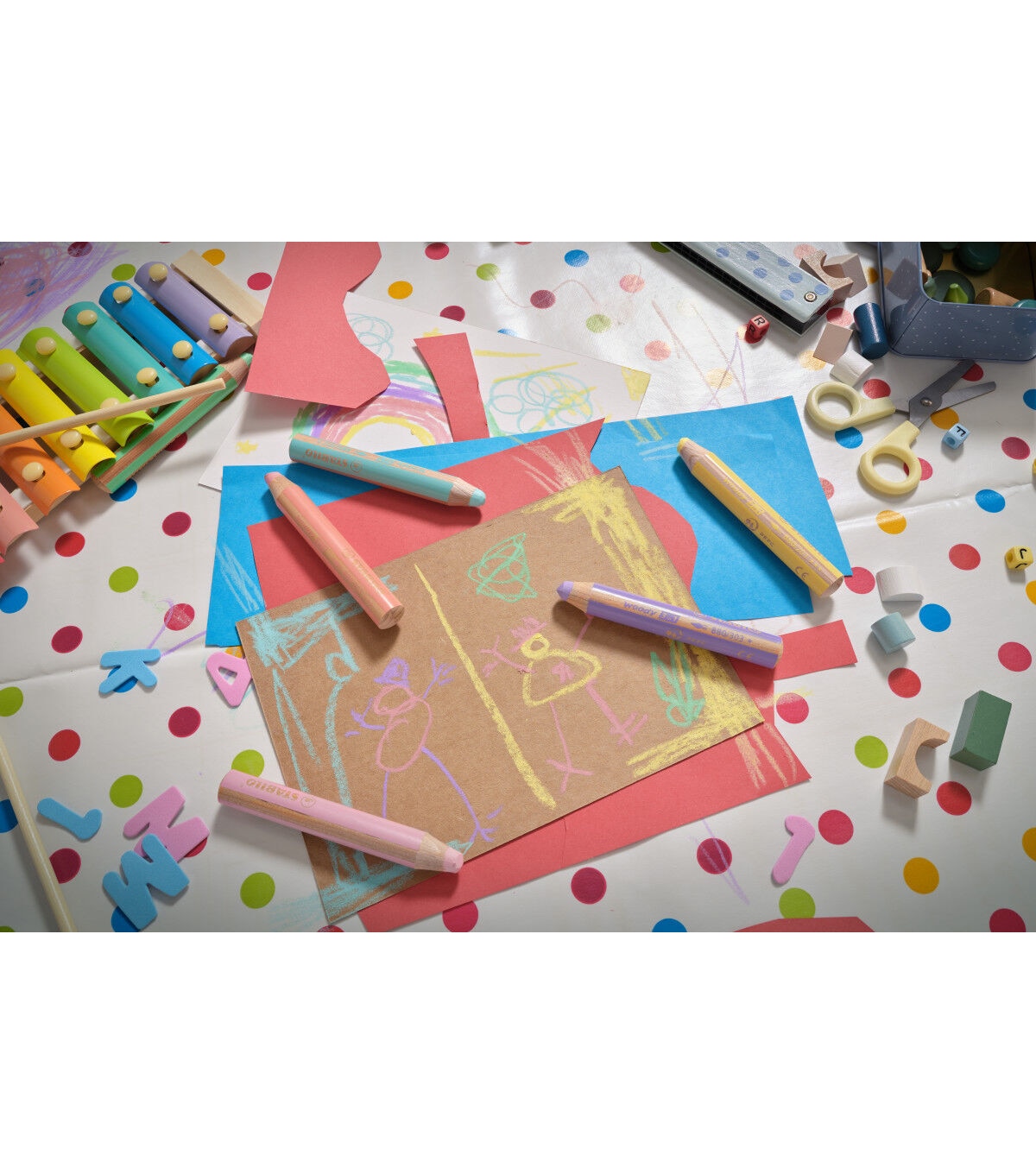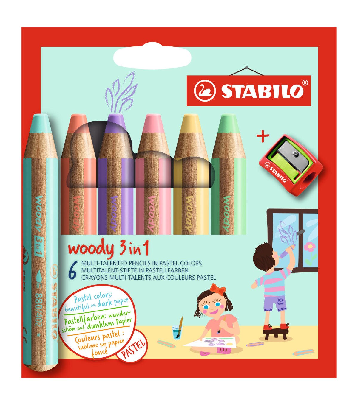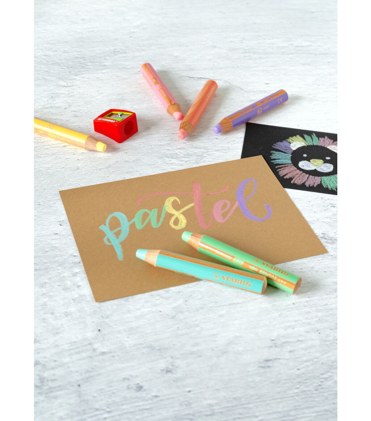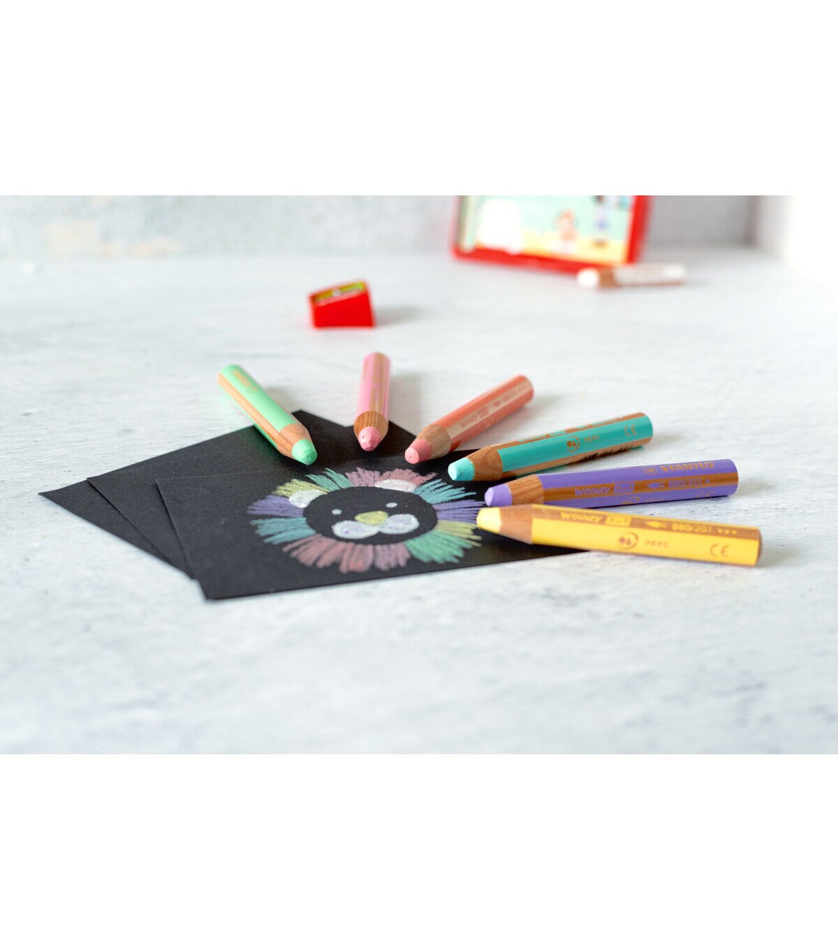 This chunky pencil functions as a colored pencil, watercolor and wax crayon in one. It is ideal for numerous techniques, endless imagination, and features 10mm lead. Outstanding watercolor properties make it ideal for painting with. The highly pigmented, lead is not prone to breakage. It exhibits color intensity even on dark papers. It can also write on smooth surfaces like glass.