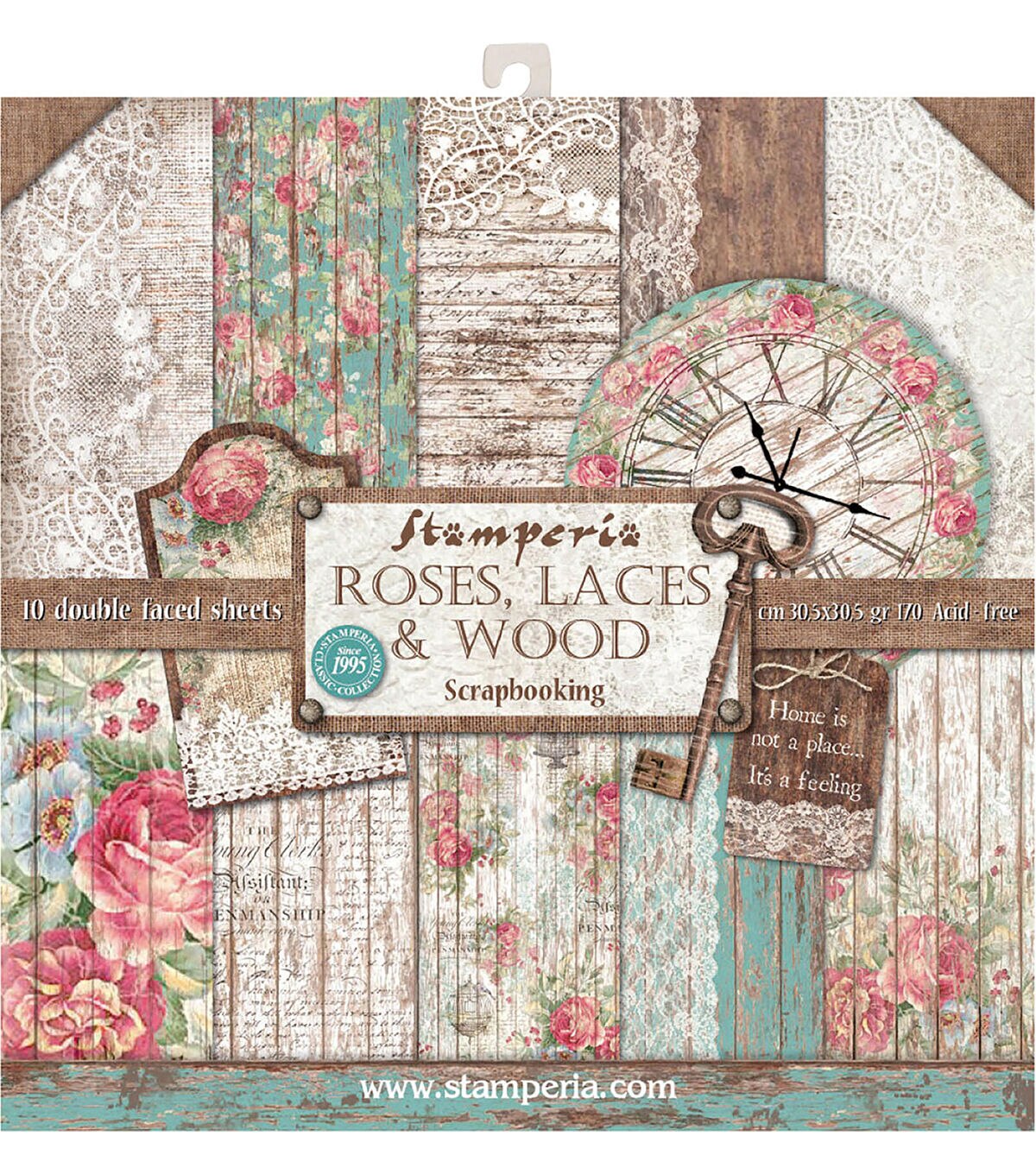 • Stamperia 10 pk Double-sided Cardstock Paper Pad - Roses, Laces & Wood